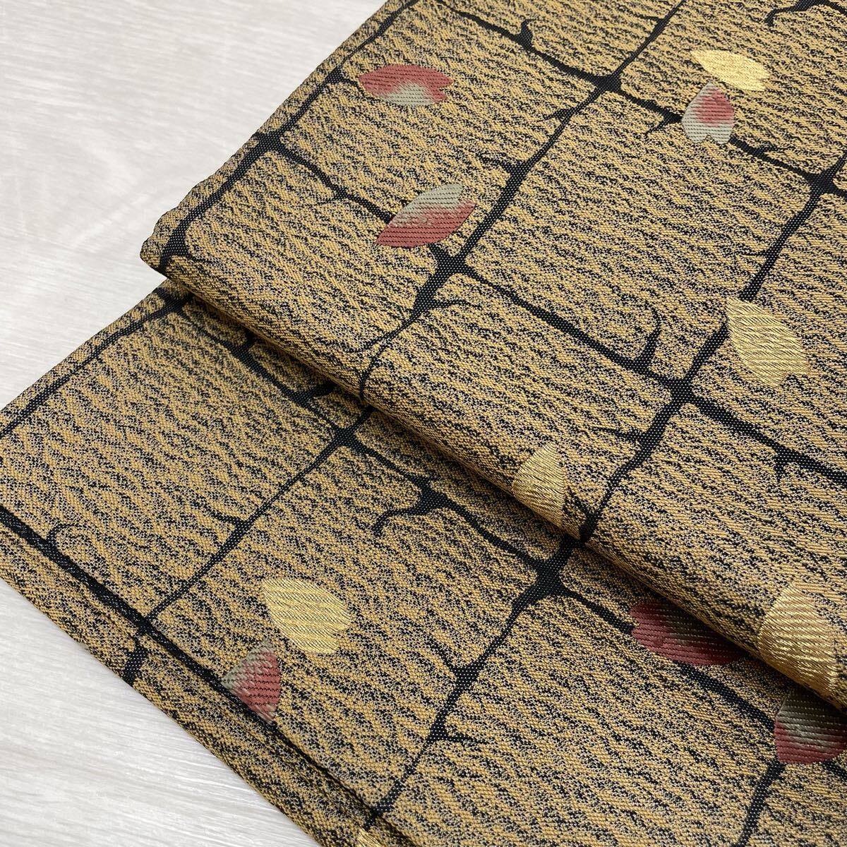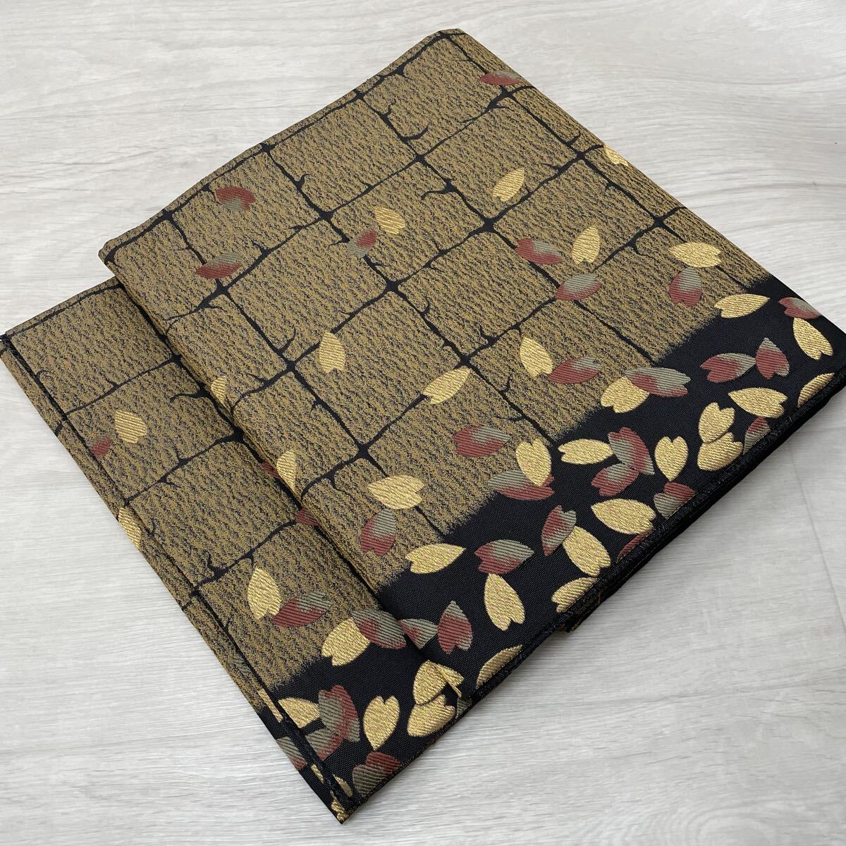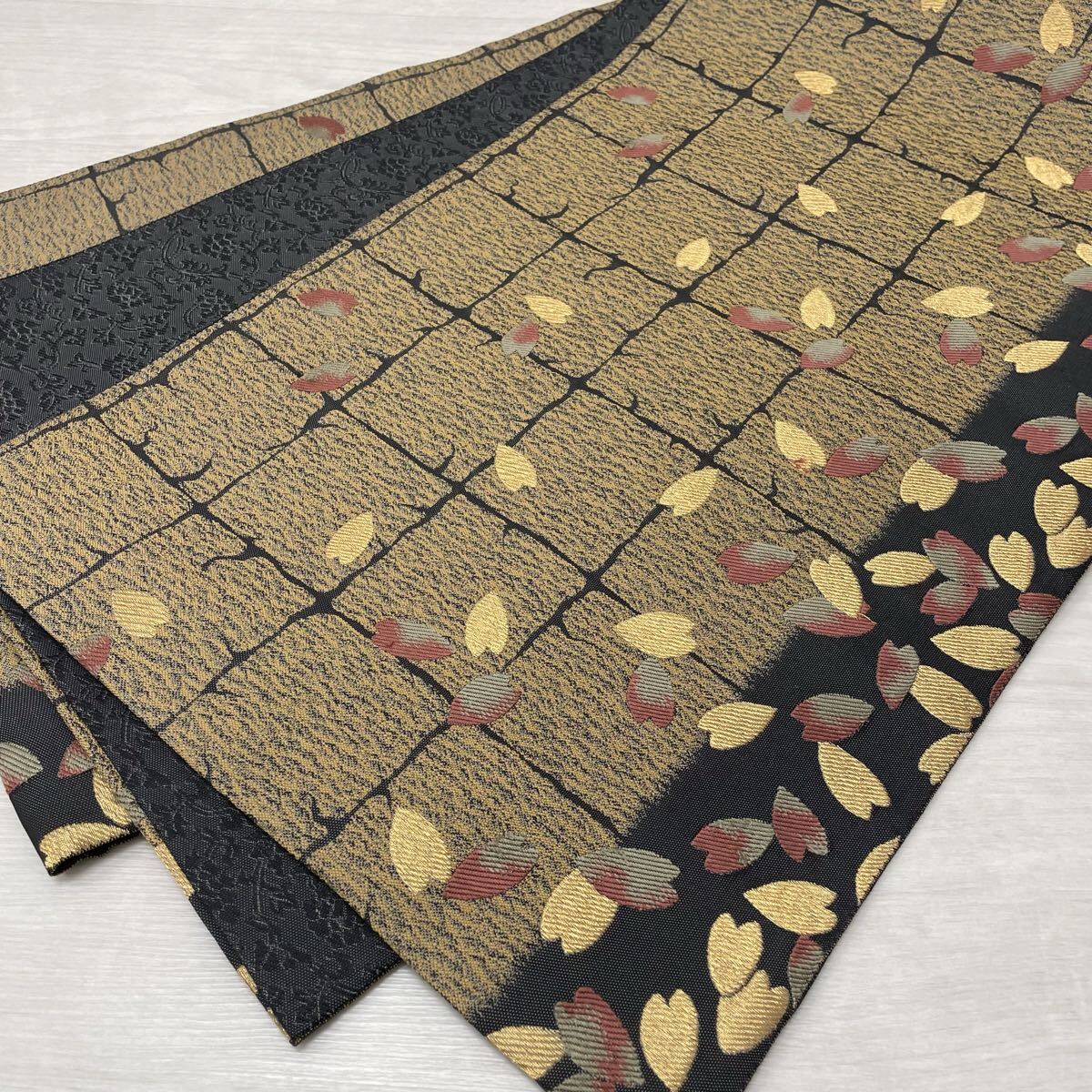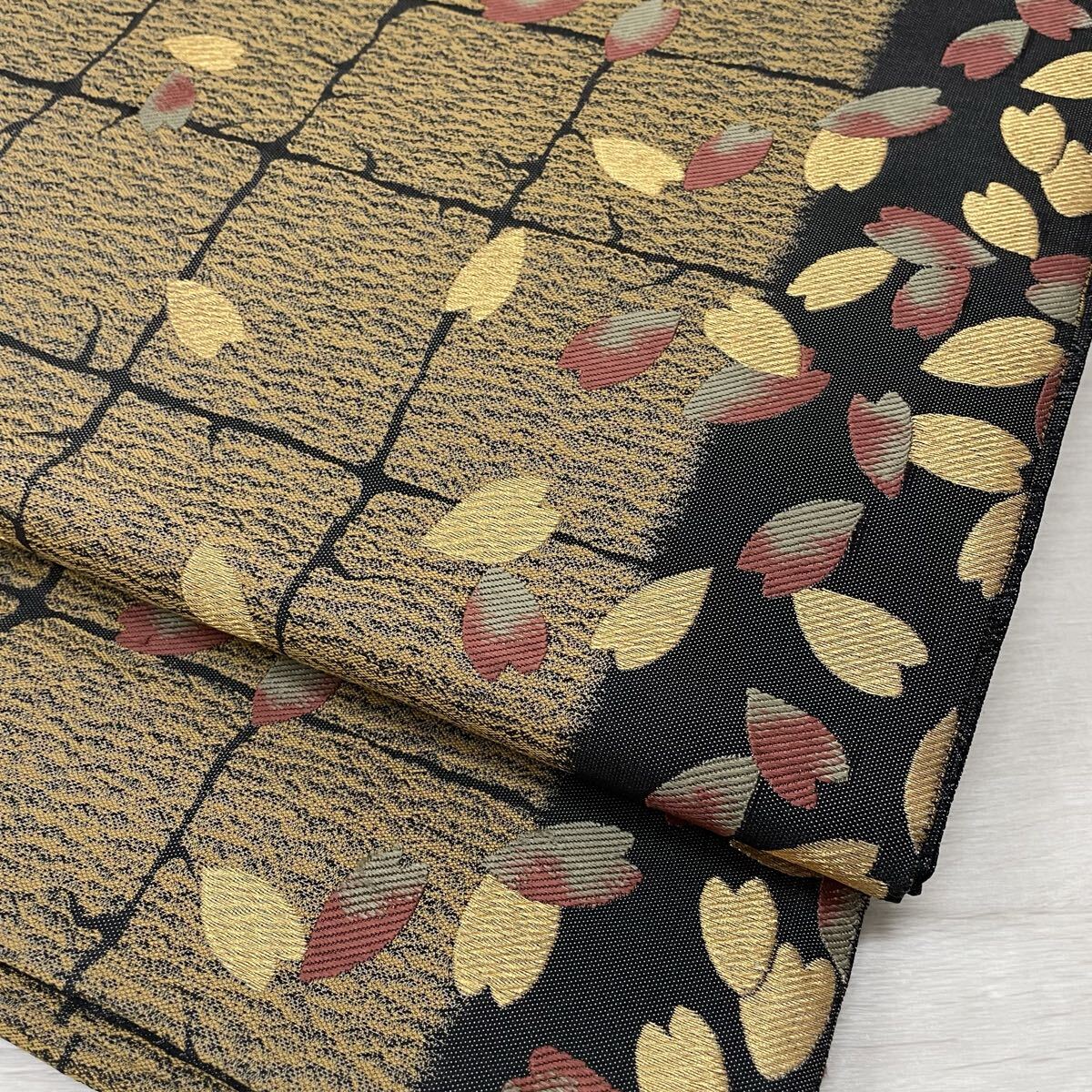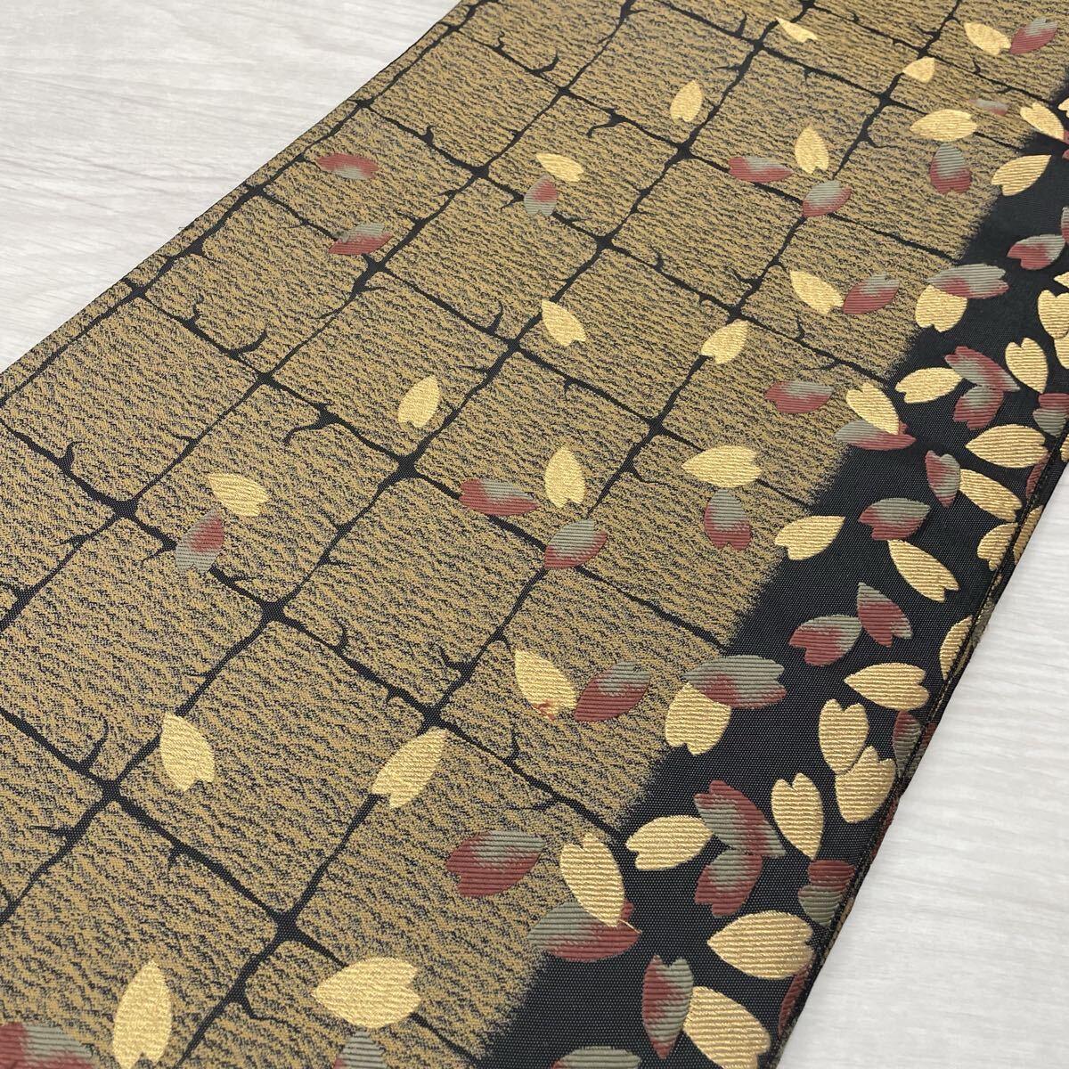 京袋帯 萬葉 市松に桜の花びら 正絹 着物 W-6690