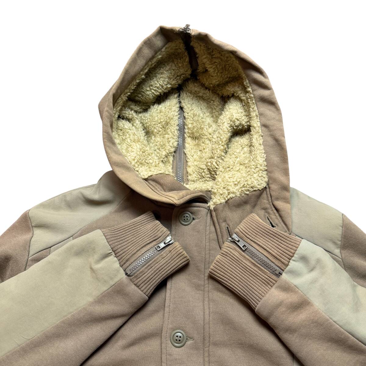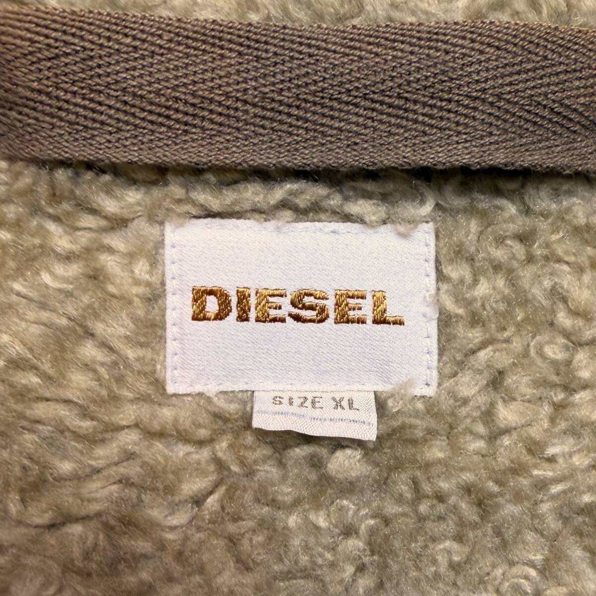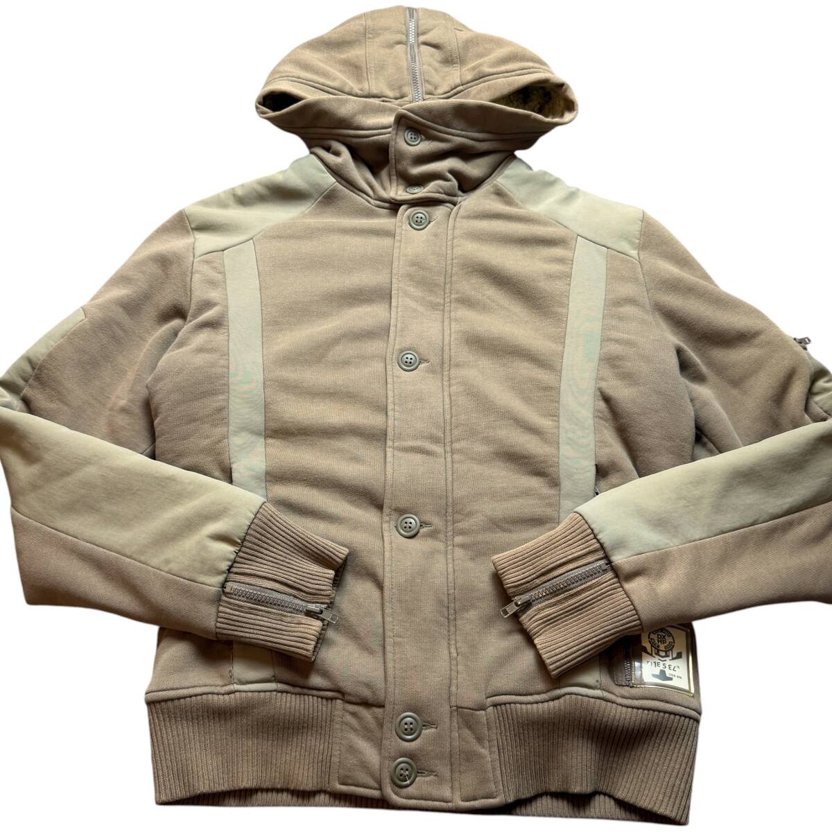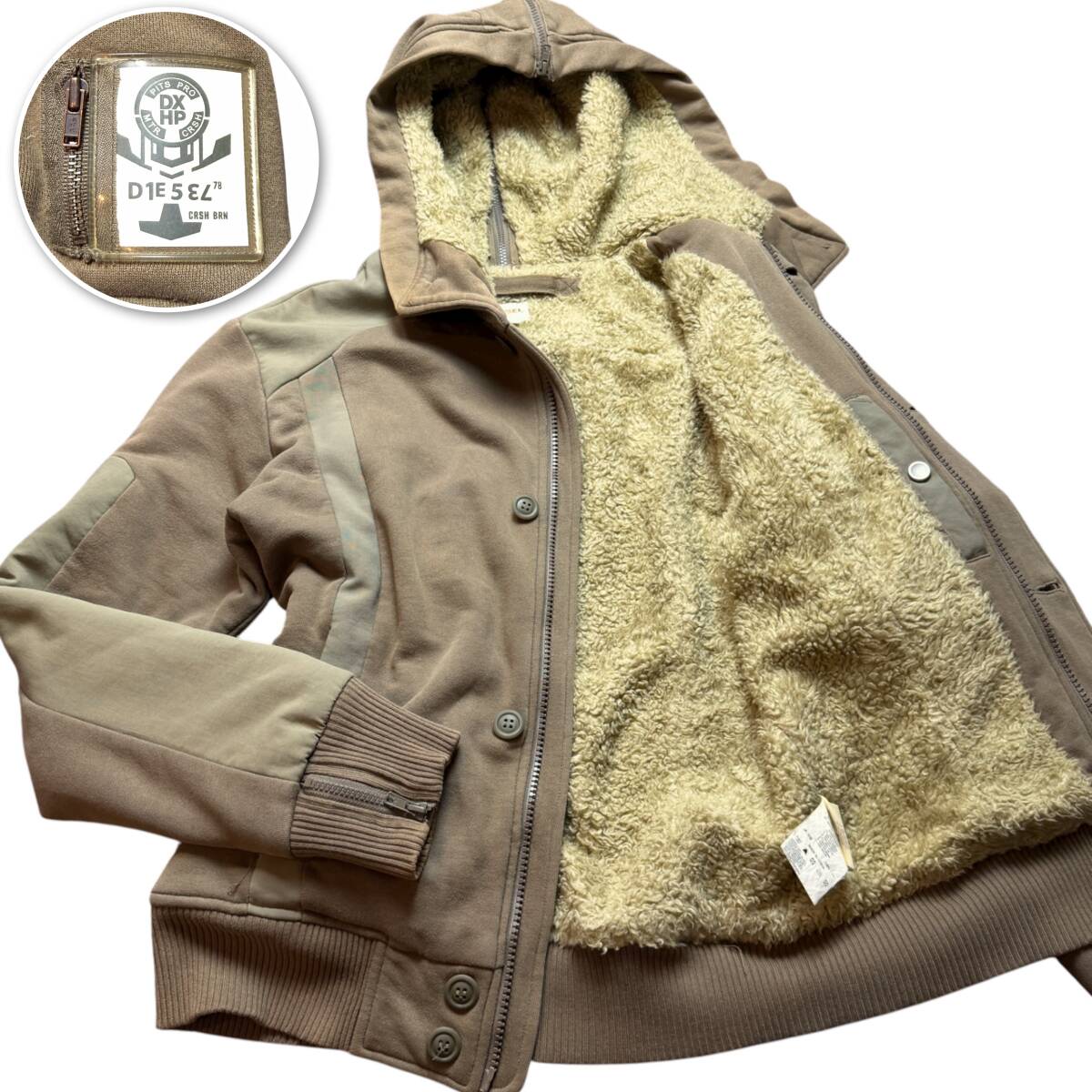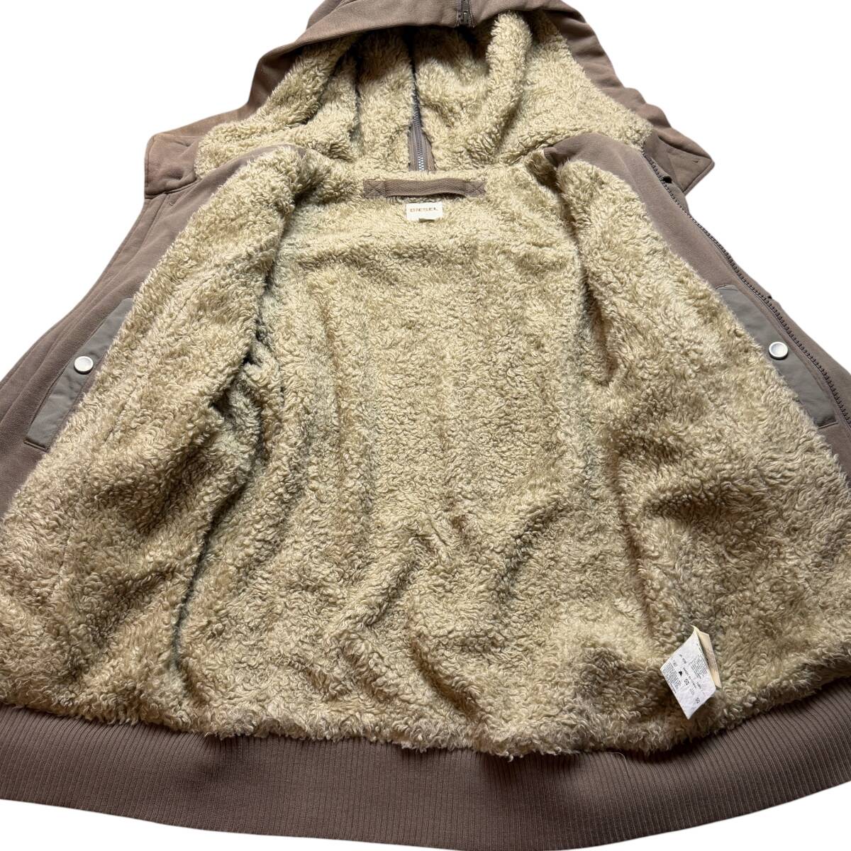 美品●希少XL DIESEL 532 ブルゾン ボアジャケット ディーゼル ロゴタグ ベージュ ミリタリージャケット パーカー フードファスナー