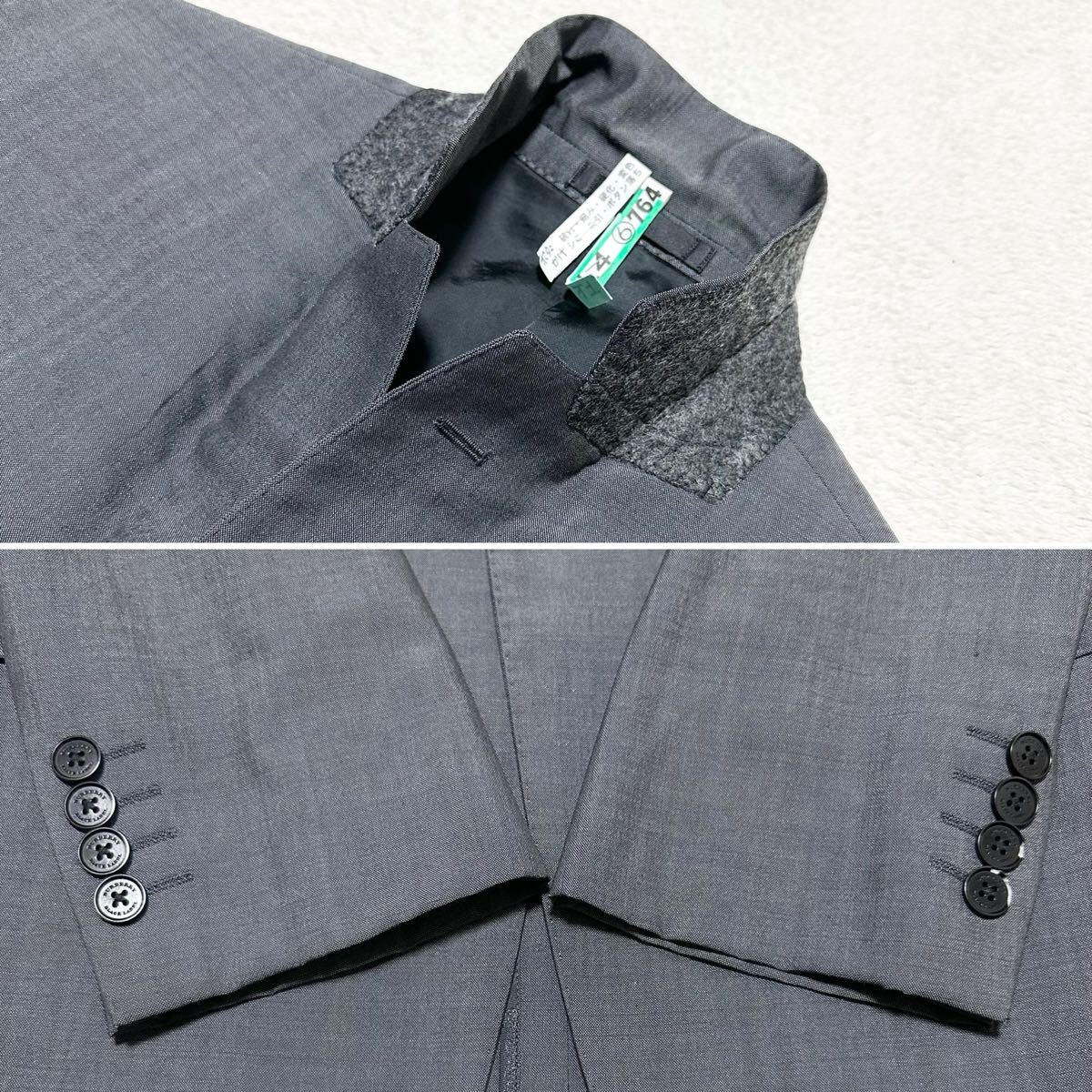 左袖ボタンの一部欠けと、パンツのフック付近に軽微なキズがございますが、着用に支障はなく、まだまだ気持ち良くご着用いただけます。