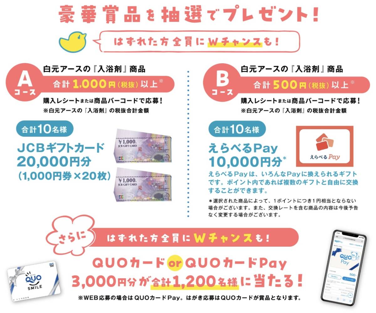 大量当選!懸賞応募★えらべるPay10,000円分・QUOカード3,000円分が1200名様に当たる★ハガキ付き