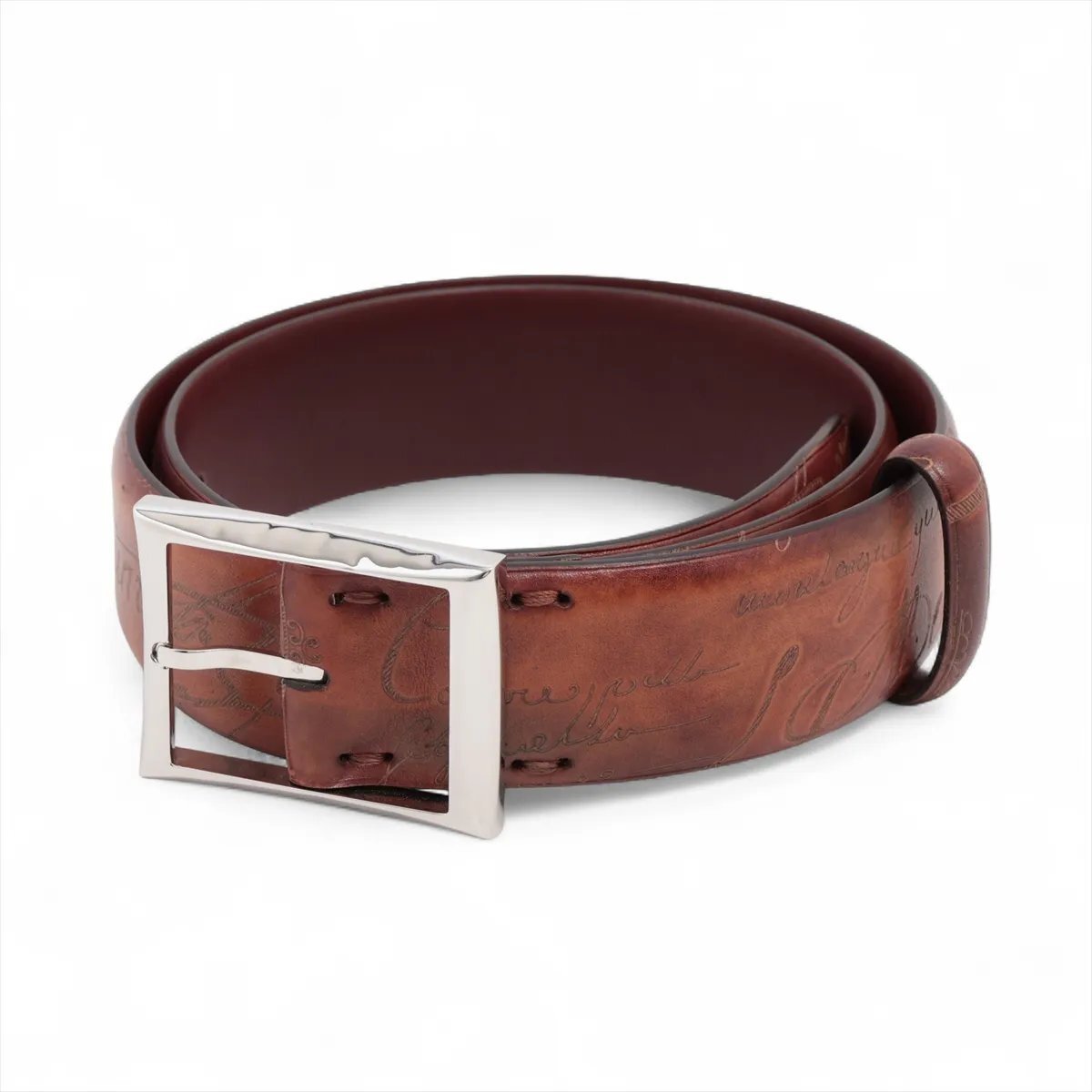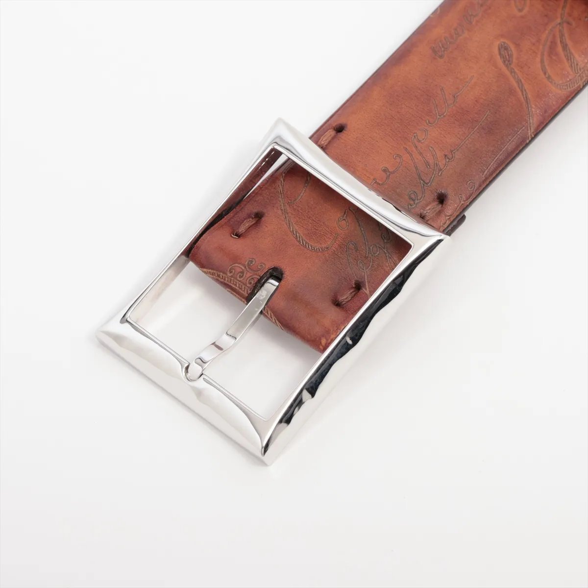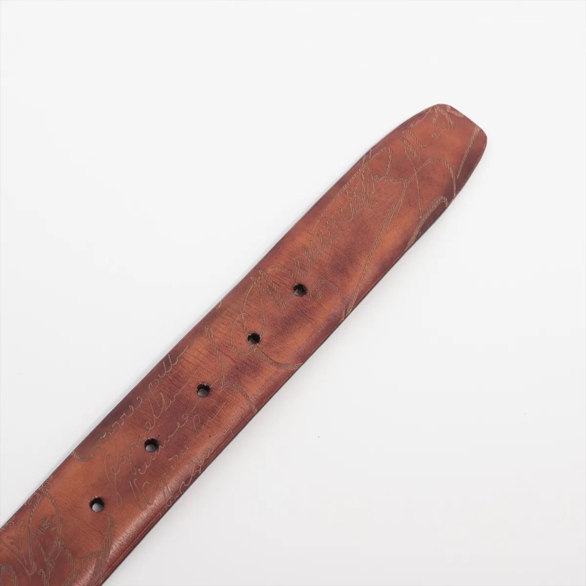 1円■極美品■ベルルッティ■カリグラフィ レザー ベルト 75 ファッション おしゃれ 本革 ブラウン 茶色 メンズ MMM CY50-1