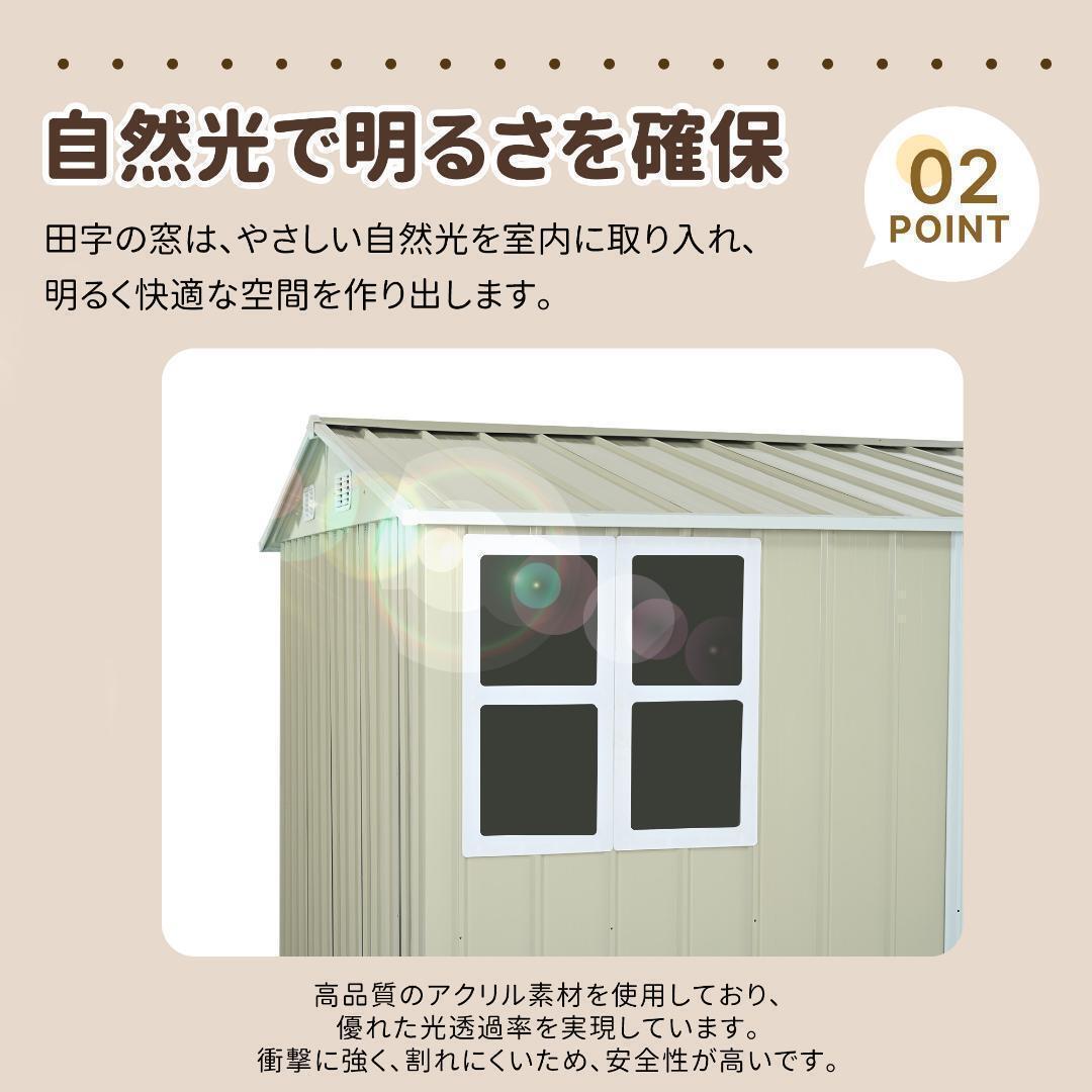 ◎【衝撃に強く凹凸璧面】壁面には特有の凹凸形状が採用されています。通常商品の平滑な壁面と比較して、凹凸部分が外部からの衝撃や圧力を分散し、全体的により安定感が增しています。【プラスチック屋根カバー】物置の屋根を補強できます。