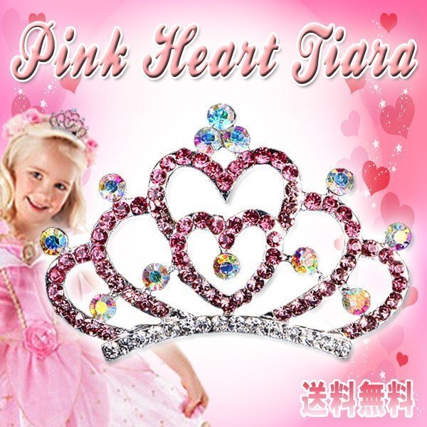 送料無料 ピンク ハート ティアラ / お姫様 ヘアアクセサリー ハロウィン Pink Dress コスプレ 発表会 結婚式 子供用 姫 ドレス