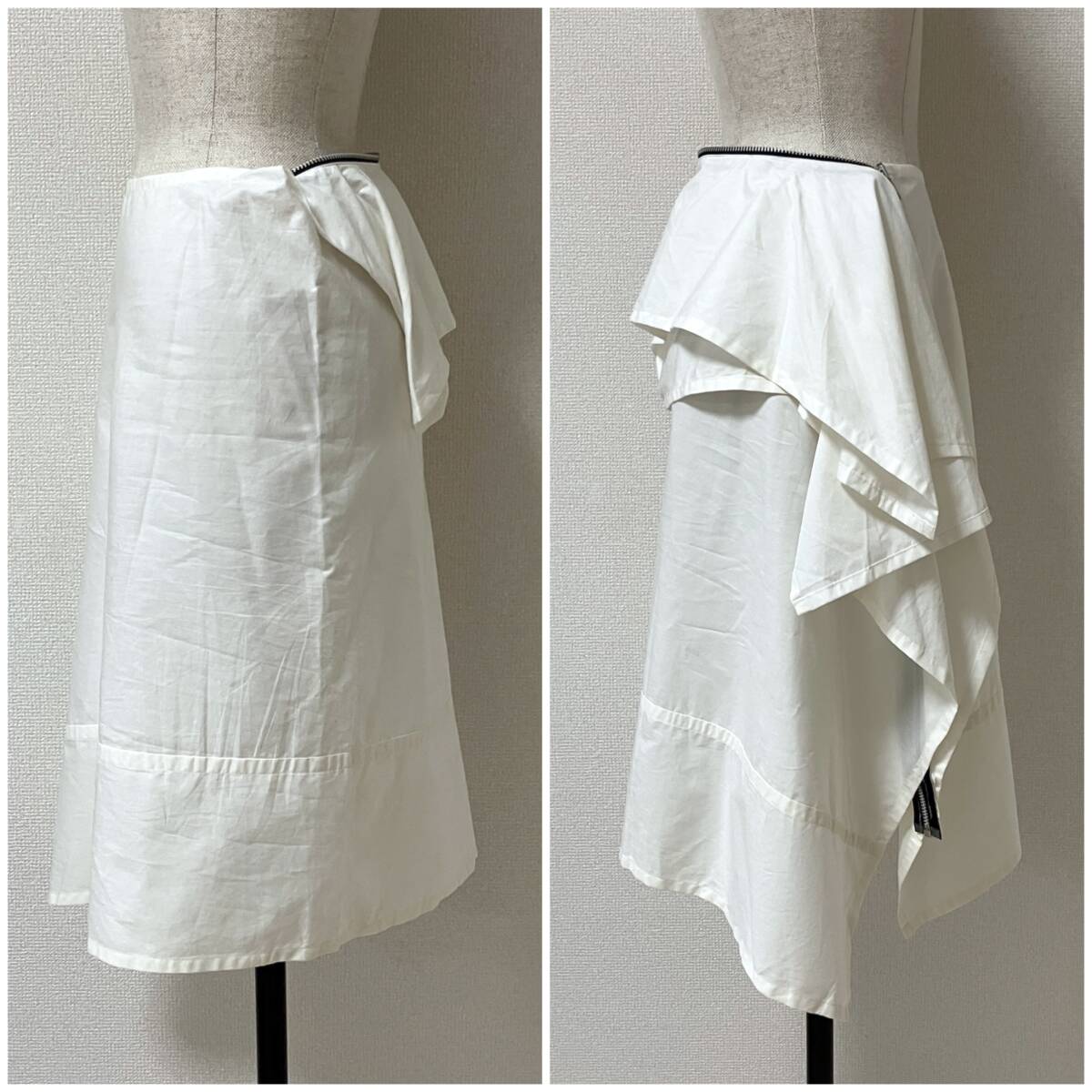 AD2004 tricot COMME des GARCONS ジップ 変形 ドレープ スカート ホワイト 白 Sサイズ トリココムデギャルソン VINTAGE archive 5090174