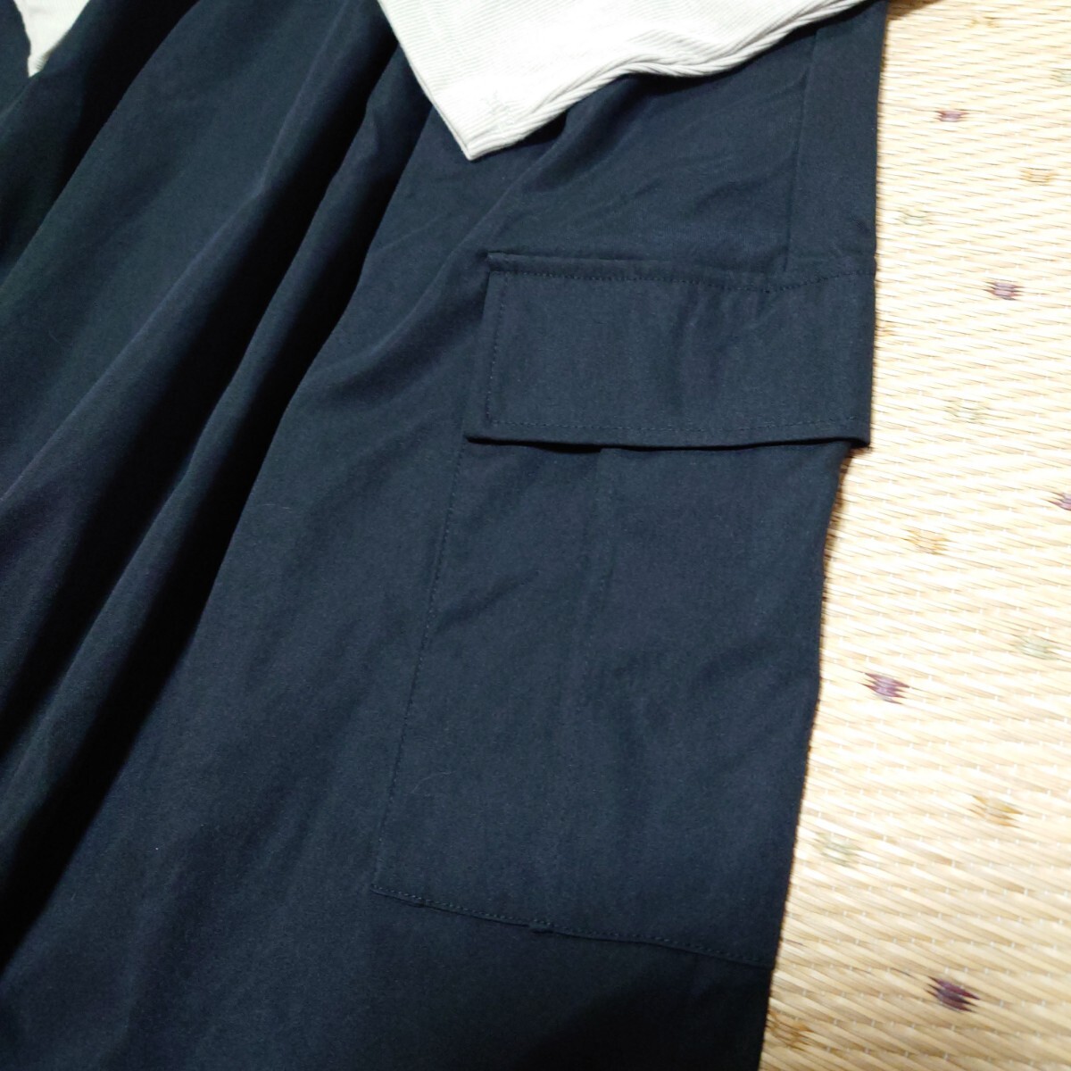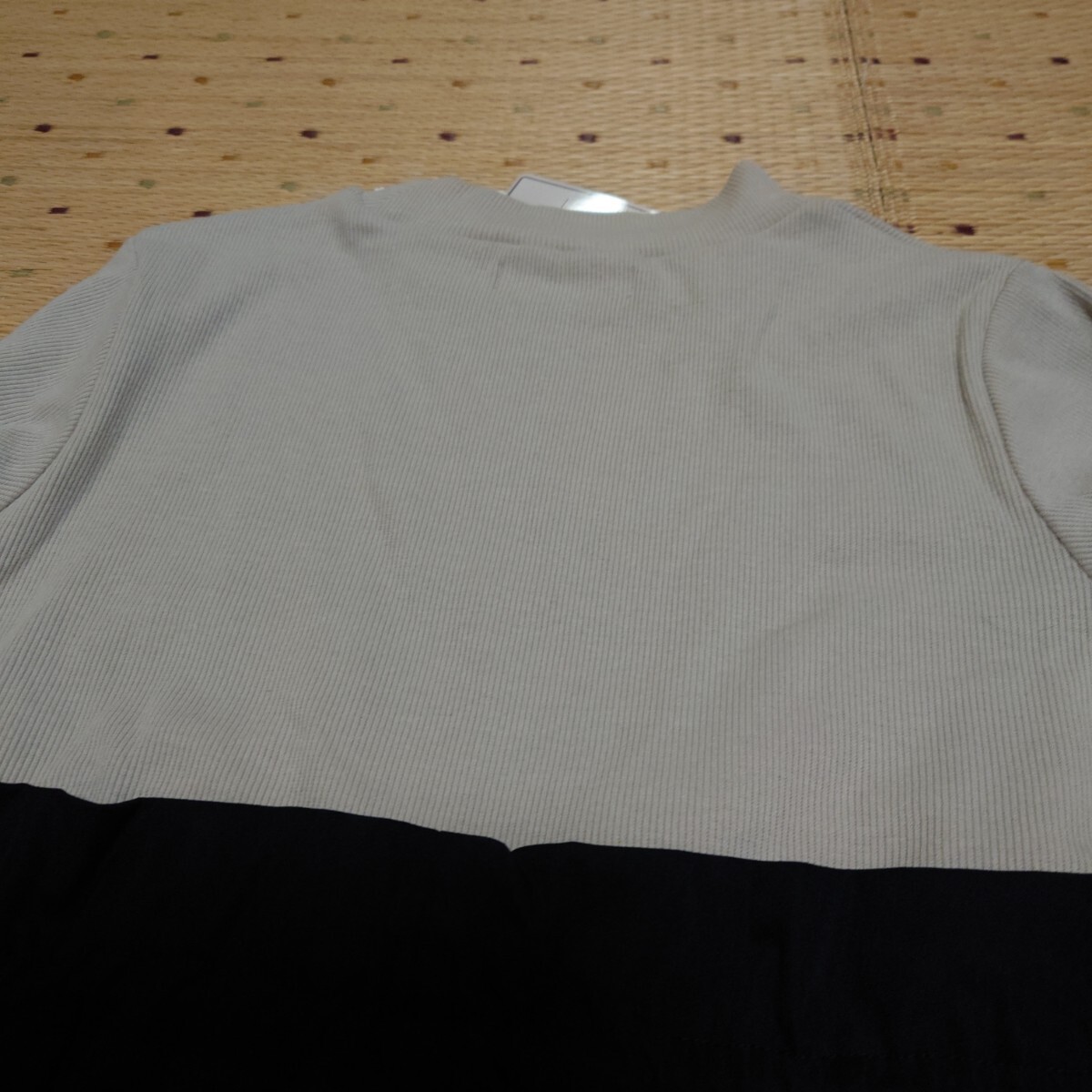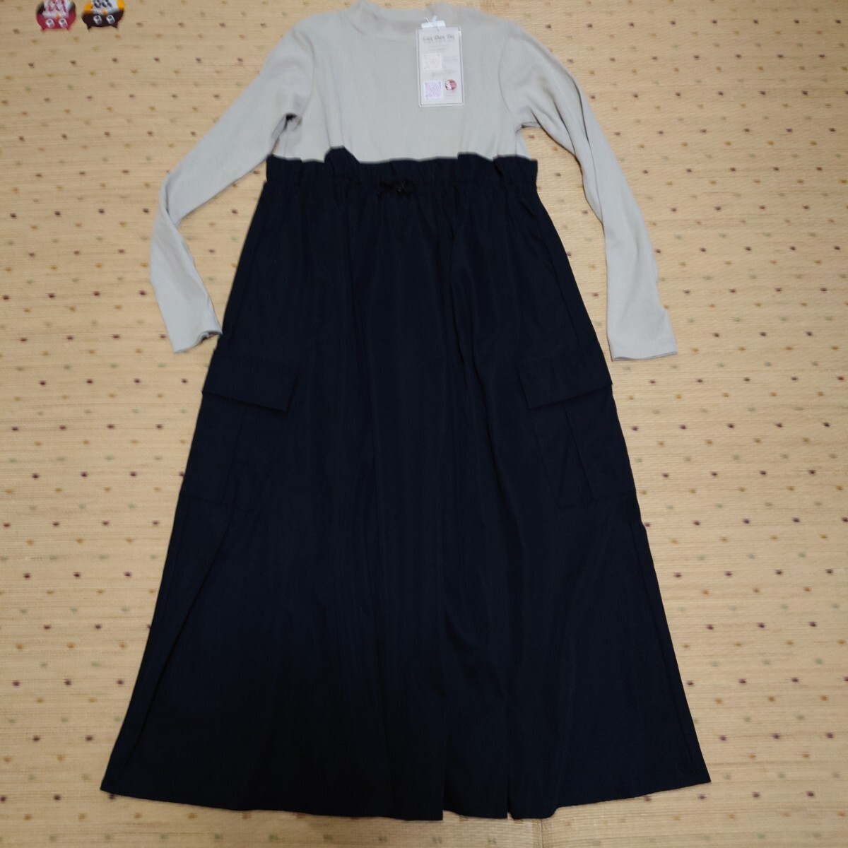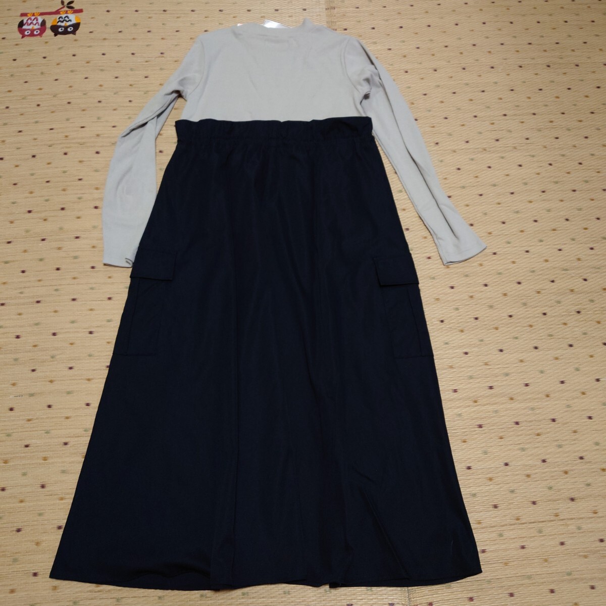 リブのグレージュ上部と黒の異素材ドッキングロングワンピース