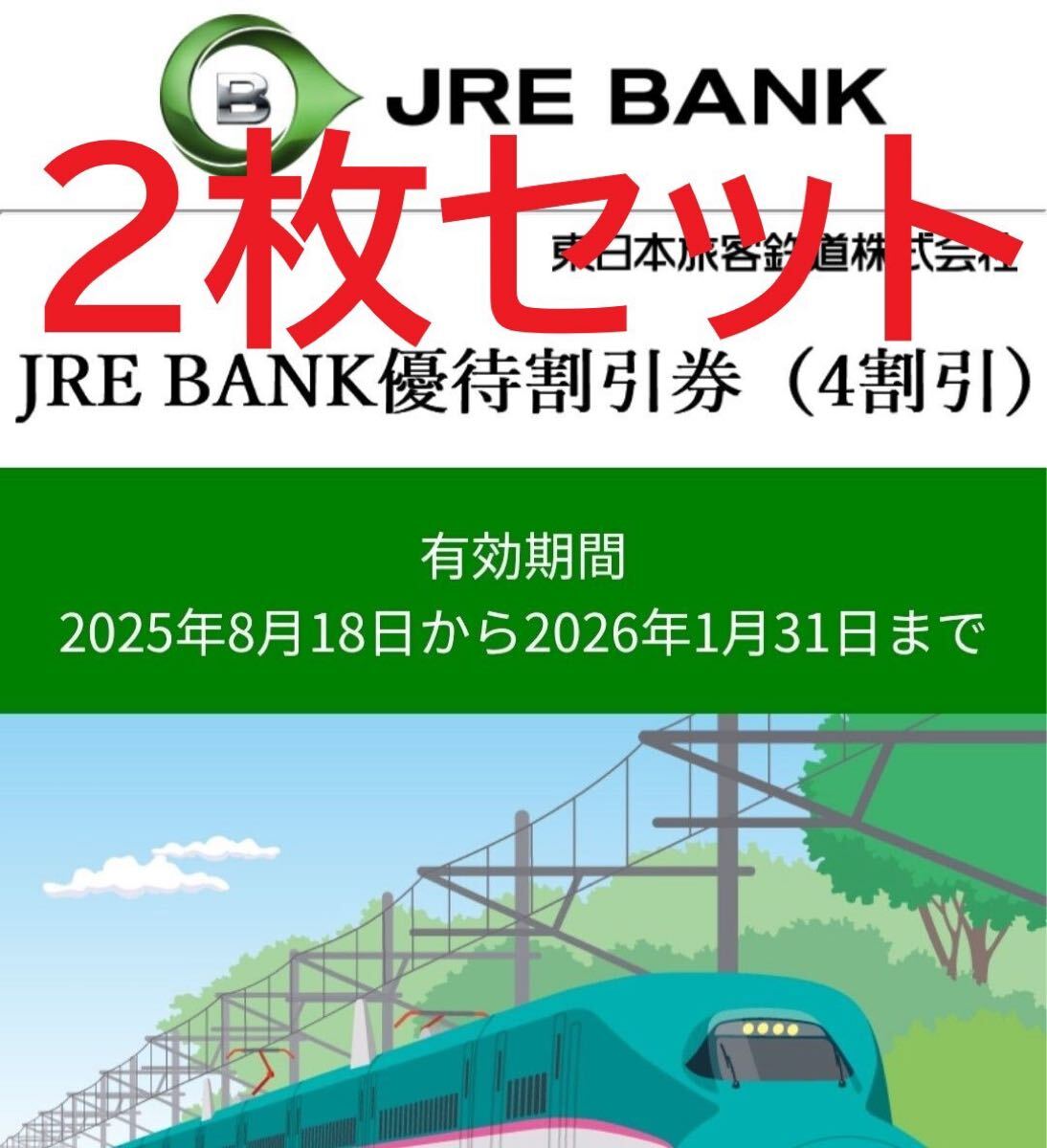 JR東日本 JRE BANK特典 優待割引券(4割引)2枚セット 期限2026年1月31日
