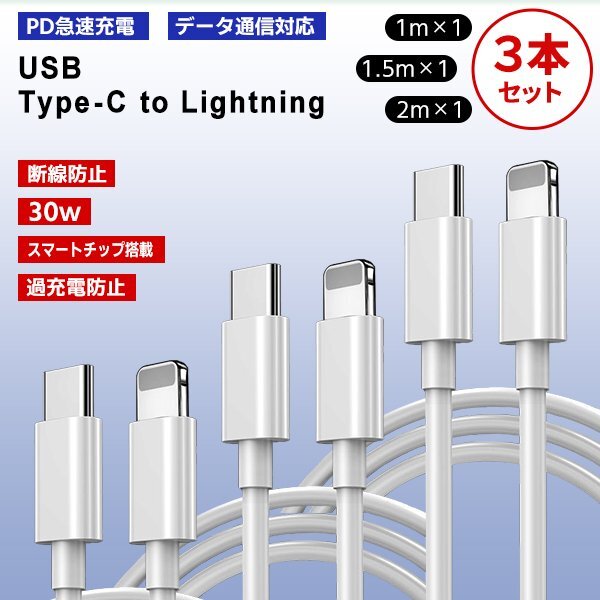 Type-c to Lightning ケーブル 1m 1.5m 2m 各1本 3本セット | ||||