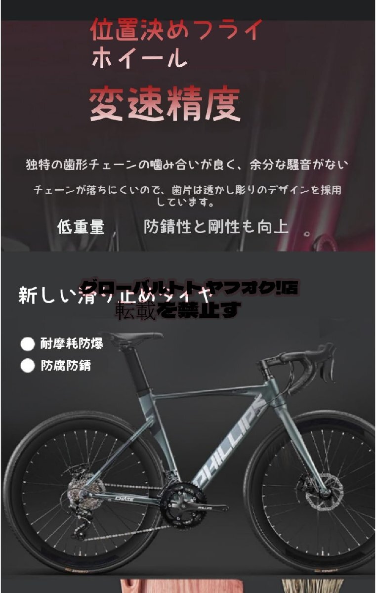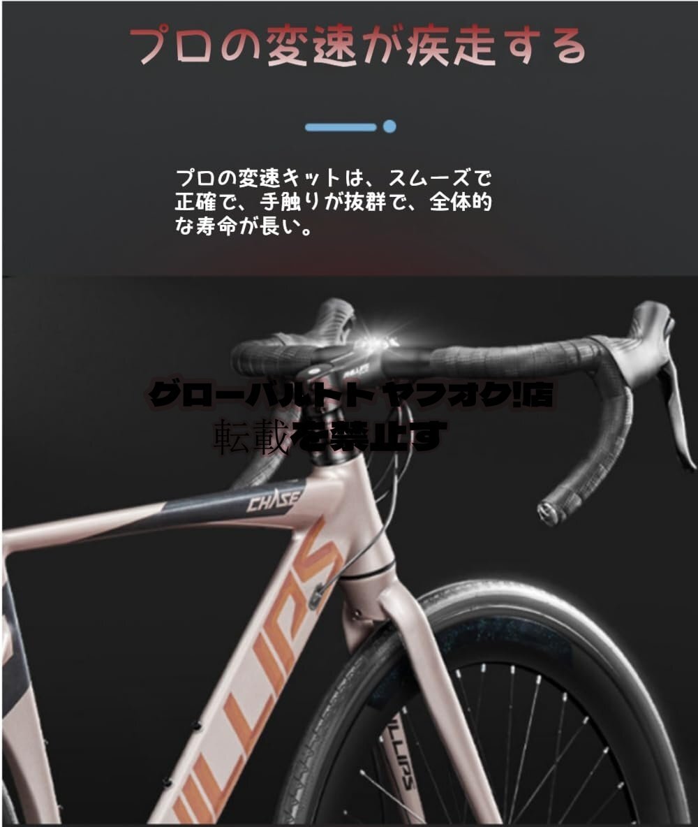 【高速トランスミッションシステム】:ロードバイクには16段階のトランスミッションシステムが搭載されており、スムーズなシフト操作を実現します。指先で確実に操作でき、安全な走行をサポートし、速度と制動力を調整できます。