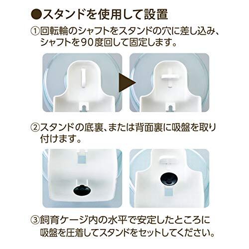 ・クリアカラー 17cm 65310・・Size:17cm・本体サイズ (幅X奥行X高さ) :17×11×21.5cm・本体重量:0.205kg・原産国:インドネシア・商品モデル番号:65310商品紹介 とっても静かなハーモニーホイール! 静音ベアリング採用 とっても静か! ス~ッと回る軽やかさ ・どんなケージにもなじむクリアカラー ・つなぎ目なしで足にやさしい ・お手入れラクラクホイール丸洗い ・夜走っても回転音が気にならない ・置くだけ簡単スタンド付き 静音ベアリング採用のとっても静かなホイール。ベアリングユニットが着脱式でホイールの丸洗いが可能。スタンド付きで様々なケージで使用が可能。一体成型でつなぎ目の無いホイール。 「スタンドを使用して設置」「ワイヤーケージに設置」「グラスハーモニー(別売)に設置」と3パターンの設置が可能です。 ホイールサイズ:約直径17.0×奥行10.0cm 製品サイズ(スタンド含む):約幅17.0×奥行11.0×高さ21.5cm セット内容:ホイール、スタンド、シャフト、シャフトネジ、吸盤 使用上の注意 ※本製品はハムスター等の小動物の屋内飼育専用です。他の目的には使用しないでください。※本製品の取り扱いは丁寧に行ってください。投げたり転がしたりしないでください。※火気には絶対に近づけないでください。※直射日光のあたる場所、高温多湿の場所に保管しないでください。変型や破損の原因になります。※幼児が本製品で遊んだりしないよう、注意してください。※各パーツをむやみにばらさないでください。※子供にセットさせる時は必ず大人の監視のもとで行ってください。※本製品を設置する場所は水平が保たれる安定した平面を選んでください。※子供がペットと遊ぶ時は、必ず大人が付き添ってください。※水槽などで使用する場合(置いただけの状態)では、ホイールが転倒する場合があります。※ベアリングの構造上、ベアリングのブレに若干のバラつきがあります。ご了承ください。※スタンドや取り付けたケージの振動などにより、音が発生する場合があります。※吸盤取付部の汚れをきれいに拭き取ってから圧着してください。※吸盤が不要な場合は、必ず吸盤を外してご使用ください。かじり行為の原因になります。※吸盤が外れたままで使用するとかじる場合がありますので、常に確認し外れている場合は圧着してください。※複数の生き物がいる場所(多頭飼い等)では使用しないようにしてください。※ペットは予期せぬ行動をとる恐れがありますので、目の届く範囲で飼育してください。※ペットや用品(器具)に触れた後は、手をよく洗ってください。※廃棄する場合は、各自治体の廃棄ルールに従ってください。 原材料・成分 本体・スタンド:PS、吸盤:天然ゴム、ベアリング:SUJ 使用方法 【スタンドを使用して設置】回転輪のシャフトをスタンドの穴に差し込み、シャフトを90度回して固定します。スタンドの底裏、又は背面裏に吸盤を取り付けます。飼育ケージ内の水平で安定したところに吸盤を圧着してスタンドをセットしてください。【ワイヤーケージに設置】回転輪のシャフトをケージにワイヤーの間に差し込み、90度回して固定します。【グラスハーモニー(別売)に設置】回転輪のシャフトをグラスハーモニー(別売)付属品のホイールホルダーの穴に差し込み、シャフトを90度回して固定します。ケージ内側の背面にある差し込み口(2ヶ所)にホイールホルダーの突起を差し込み、左にカチッと音がするまでスライドさせます。 ※製品の仕様、デザイン、価格等予告なく変更することがあります。