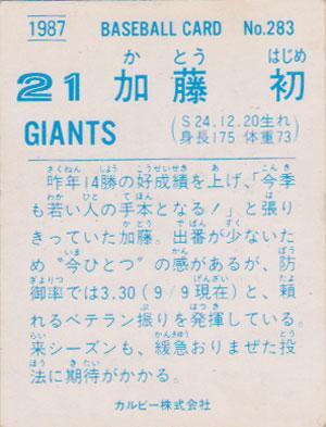 ★トレーディングカード★1987カルビープロ野球チップス【#283 加藤初】★