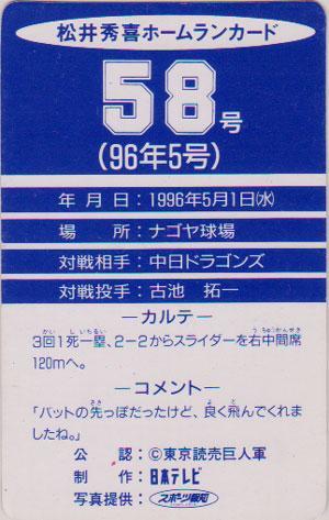 ★トレーディングカード★日本テレビ劇空間プロ野球【松井秀喜ホームランカード #058】★