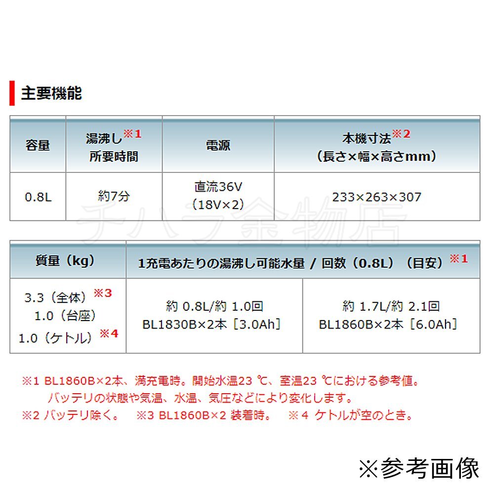 1点限り 展示未使用品 マキタ 充電式ケトル KT360DZ 18V×2 青 0.8L 本体のみ(バッテリ/充電器別売り) バッテリ湯沸かし