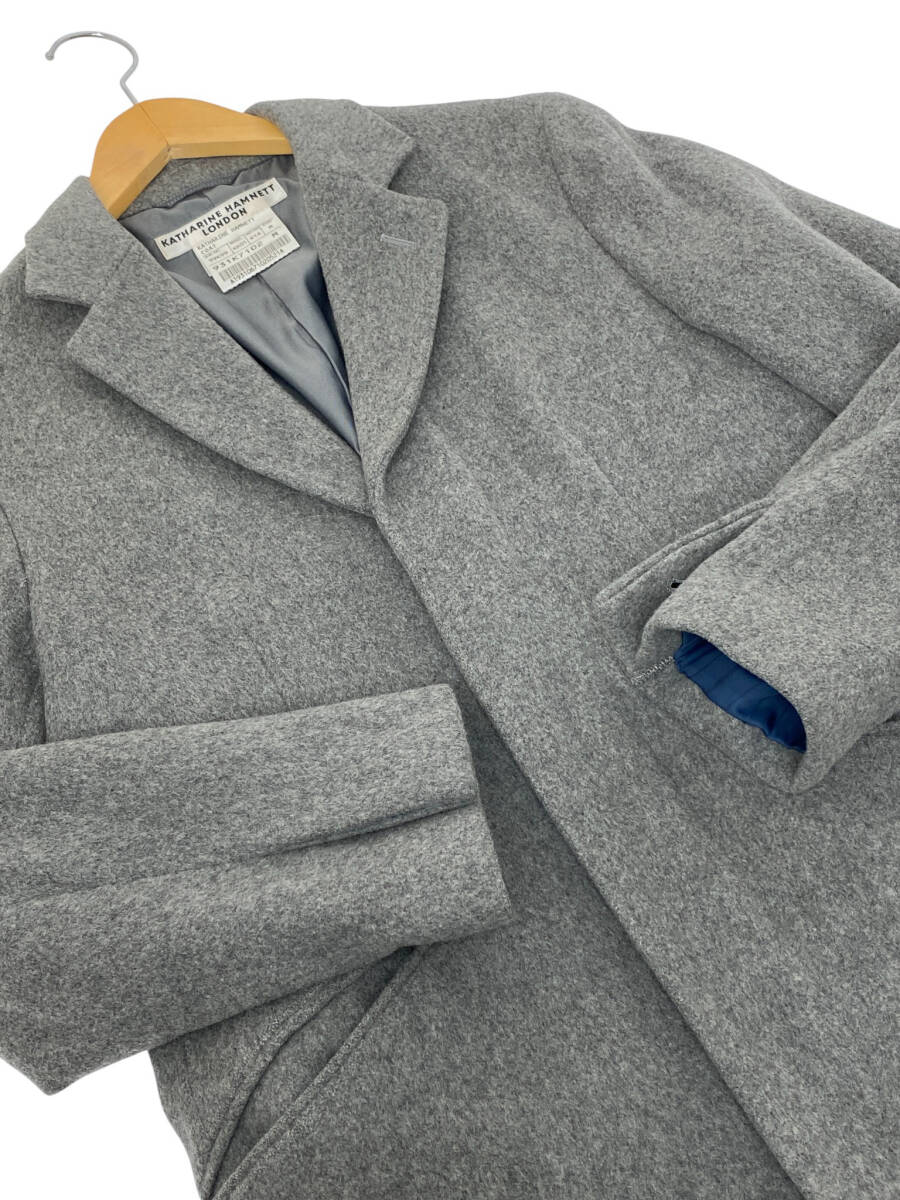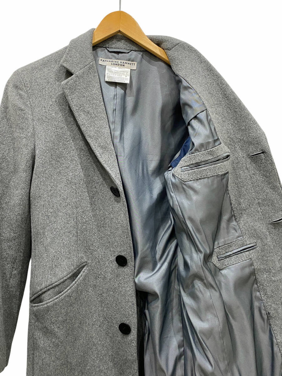 | 【キャサリンハムネットロンドン KATHARINE HAMNETT LONDON】 コート チェスター 比翼ボタン カシミヤブレンド ウール グレー size M メンズ | |