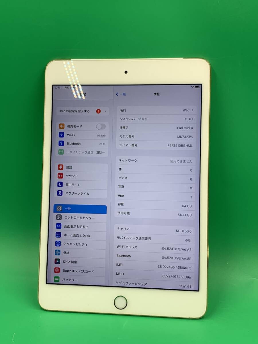 【商品名】iPad mini 第4世代 Wi-Fi+Cellular 【容量】64GB 【カラー】ゴールド 【型番】MK732J/A 【バッテリー最大容量】100% 【アクティベーションロック】解除済み 【シリアル / IMEI】359274064588062 【SIMロック】解除済み 【キャリア】docomo 【利用制限】○ 【初期不良】商品到着後1週間 【付属品内容】 ★本体 ※その他注意事項: ♪液晶面:純正パネル、多少使用感がありますが、比較的に綺麗な状態です。 ♪本体状態:本体フレーム交換歴あり(純正取り外し品) 通信含め、動作確認済みで、全て問題なく、使用できます。 【発送日程】当日または翌日(当日12時過ぎた場合は翌日になります。) 【発送方法】2、ヤマト運輸コンパクト 【定休日】日曜日(土曜日12時以降、日曜日お支払いの場合は月曜日に発送致します。) 【管理番号】AJ120251110−GR0098 【免責事項】 1、写真はなるべく分かりやすいよう、傷、汚れなどを隠さず、正確な情報をお伝えしますが、 一部どうしても映れない傷、汚れがあるかもしれませんので、ご注意ください。 2、あくまで中古品ですので、多少の汚れ、細かい傷がございますので、神経質な方はご慎重にお考えください。 3、また、バッテリーは消耗品のため、保証の対象外となります。 4、バックライト等の消耗品、液晶色ムラ・ドット抜けは可能な限り記入するようにしますが、あくまでも消耗品なので、当方が検品できない場合もございますので、その場合は保証対象外になります。 | ||