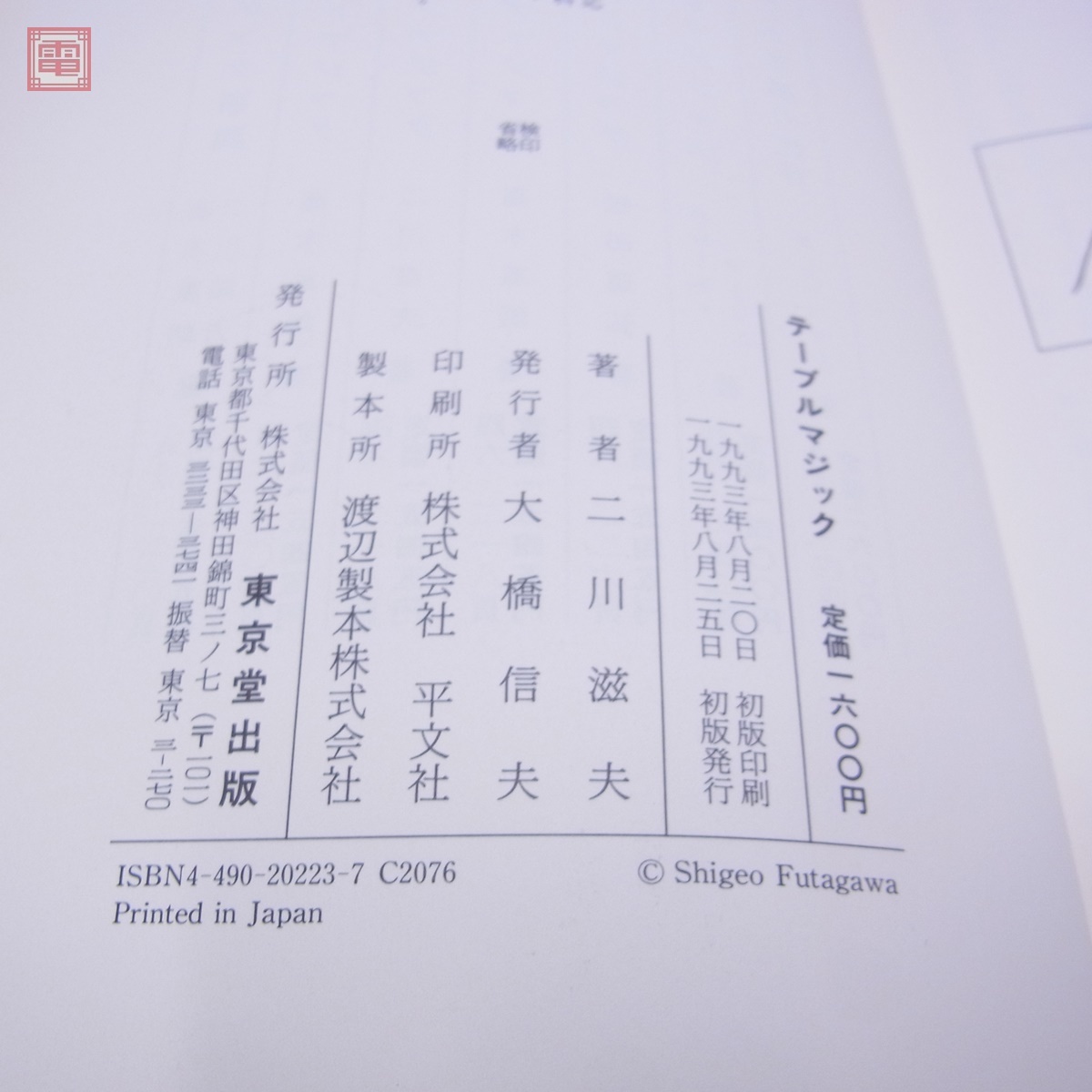 奇術入門シリーズ テーブルマジック/ステージマジック まとめて2冊セット 東京堂出版 1993年〜2004年発行 二川滋夫 北見マキ 手品 ■スレ、ヤケ、汚れ等があります。 ■写真のものが全てです。付属物の有無や状態については写真からご判断ください。 ■付属物については細かいチェックはしておりませんので、万が一、欠品があったり余計な物が入っていたとしてもご了承ください。 ■商品到着後、当店の保証期間中は、商品及び箱や取説、付属品などを1つでも廃棄や破損をしないようにお願い致します。廃棄や破損をした場合、商品に問題があった場合でも対応や返金などの対処ができなくなります。 ■商品によりますが、発売されてから10年以上経過している中古品である事をご理解頂いた上でご入札をお願い致します。なお、新品や美品、また特記事項がある場合は別途明記します。 | |||