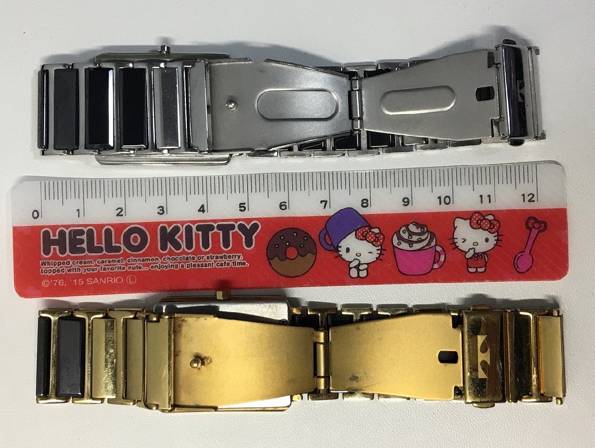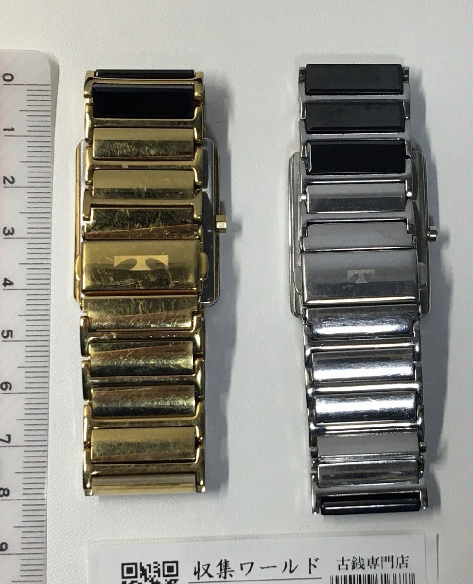 TECHNOS/テクノス クオーツ 腕時計 アナログ ゴールド&シルバーペア ブラック 動作未確認-D2210