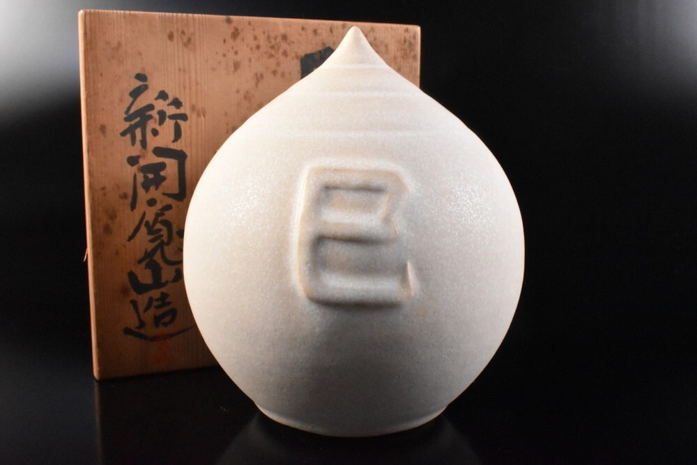 | 商品名 | 【雲】某有名資産家買取品 京焼 新開寛山 白釉巳のなる宝 置物 在銘 共箱 古美術品(干支オブジェ) K5104 |
