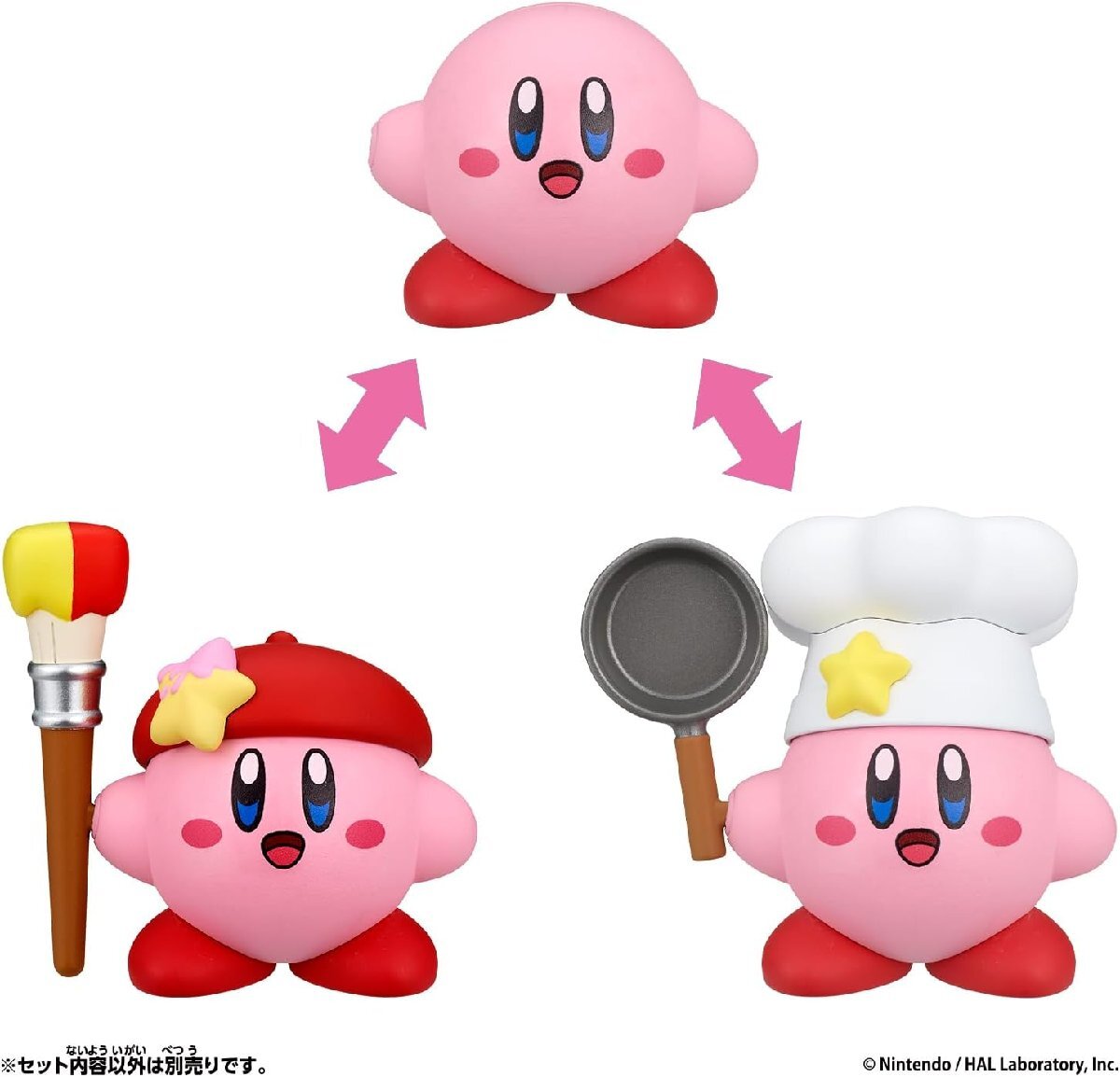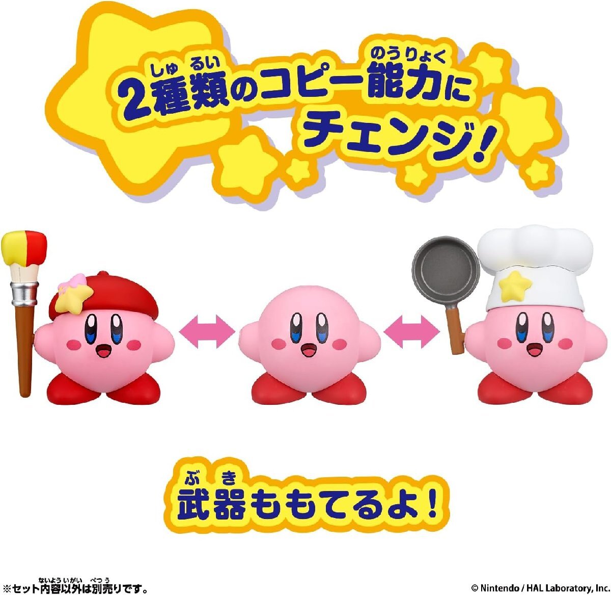ゲーム中のカービィと同様に、ノーマル姿のカービィから、アーティストとコック、2つのコピー能力に変身できるフィギュアのセットです。