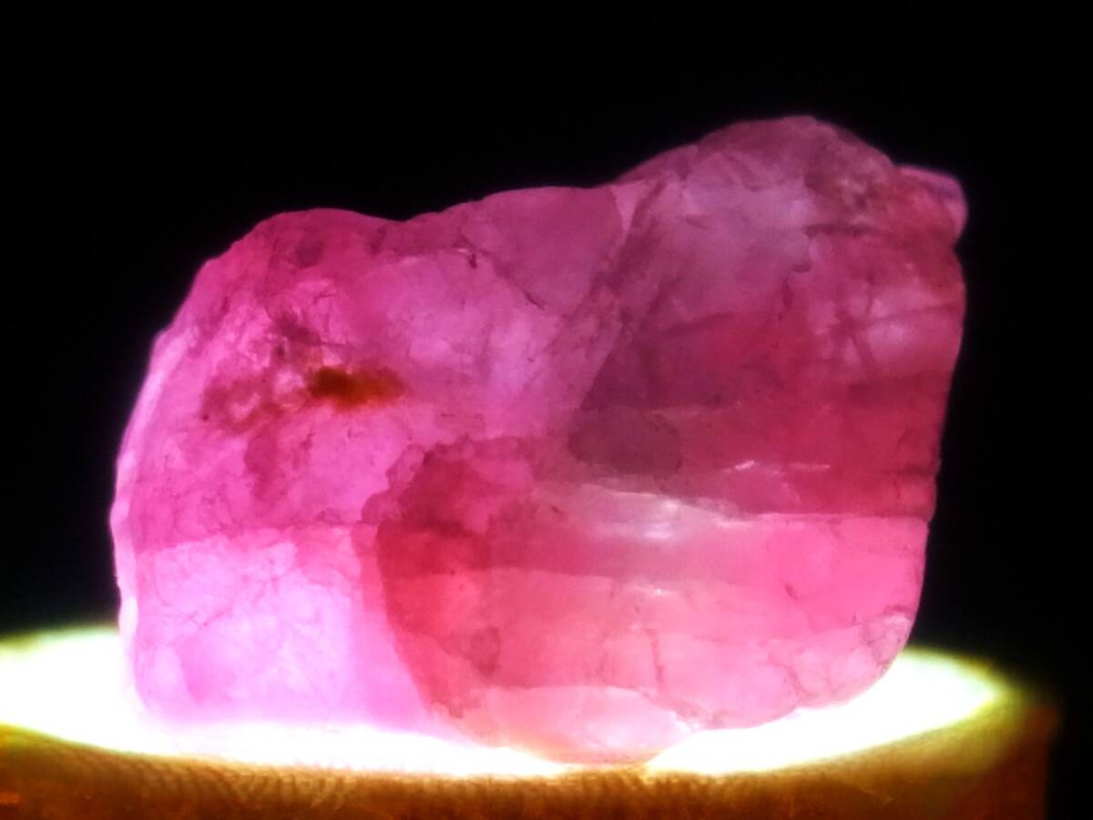 9.41ct 新品・天然レッドスピネル原石 ミャンマー産 ブラックライトで真っ赤に変色します
