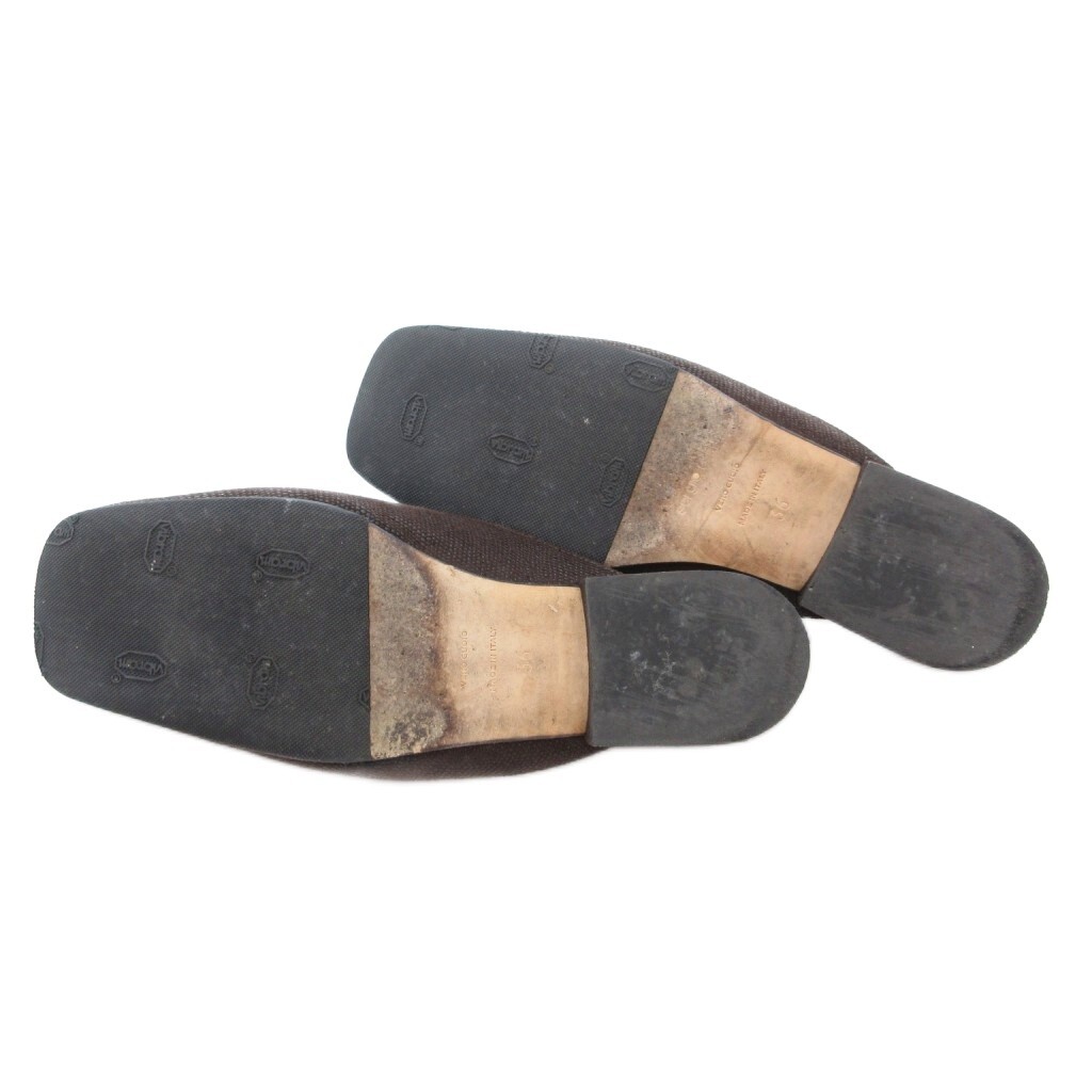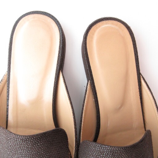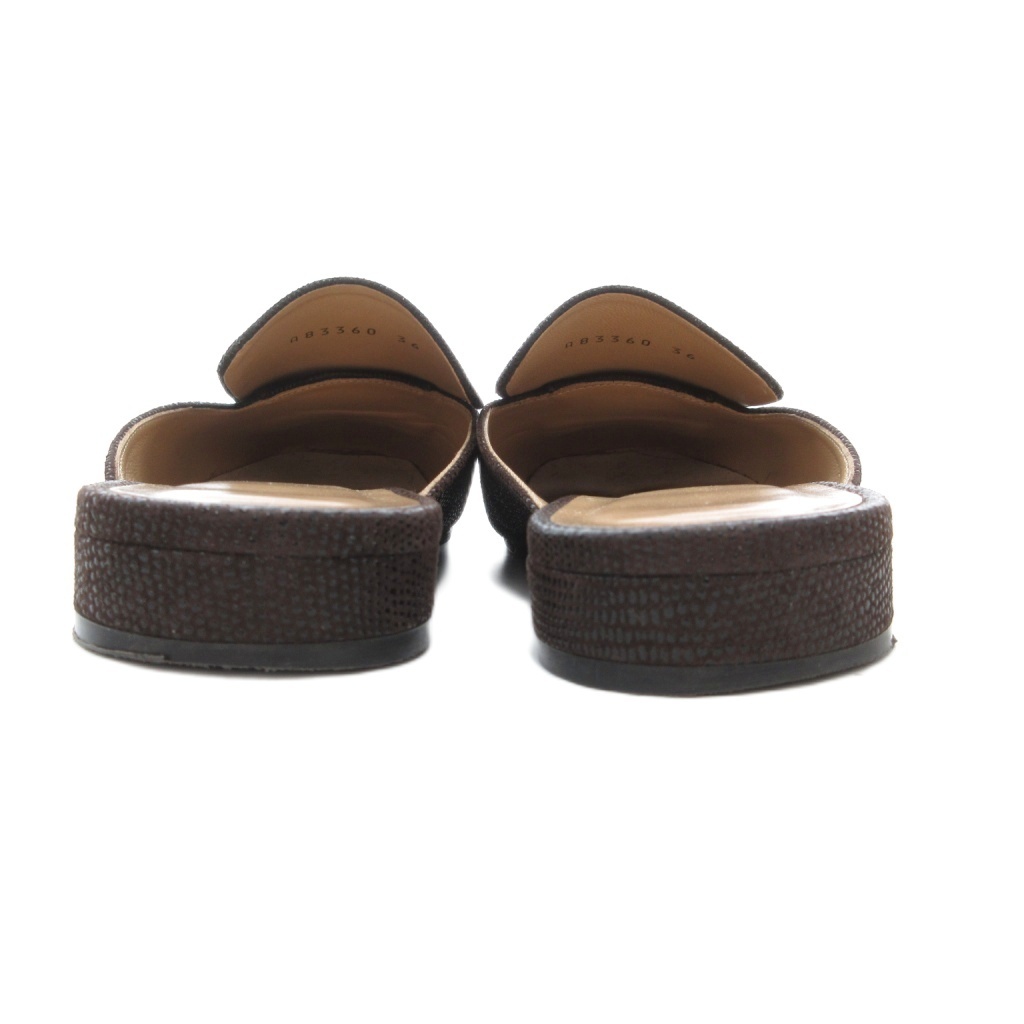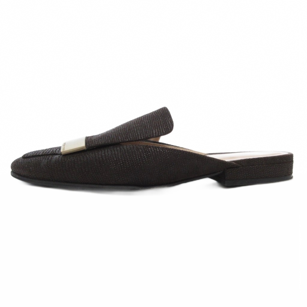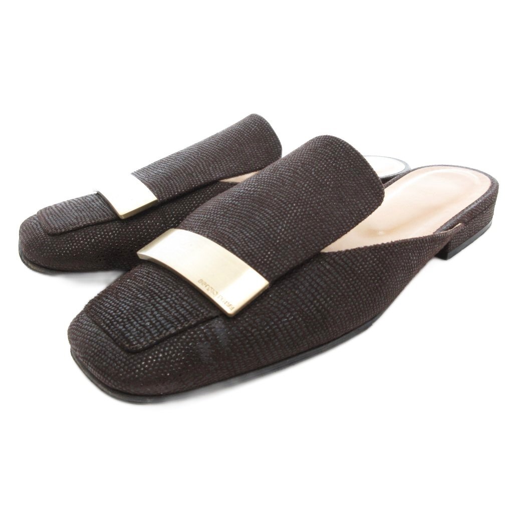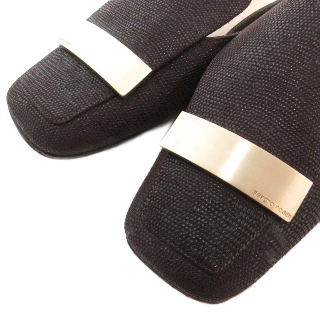 セルジオロッシ Sergio rossi SR1 プレート ミュール サンダル ローヒール ダークブラウン ゴールドカラー 金色金具 36 23cm