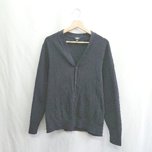 ◇ ⊇ UNIQLO ユニクロ Vネック 長袖 カーディガン サイズL ネイビー レディース メンズ E