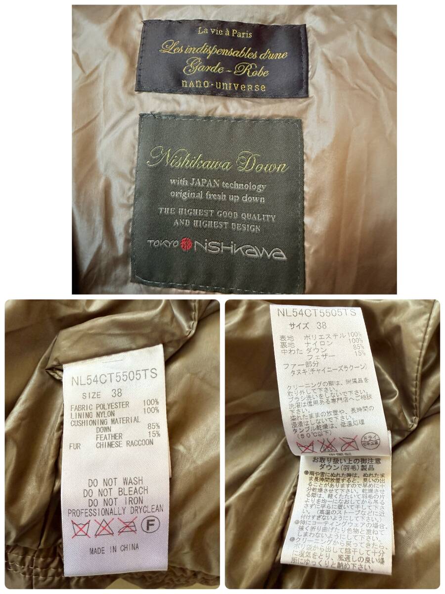 | ★ 商品名 ★ NANO universe ナノユニバース 西川ダウン nishikawa DOWN ラクーン ファー ロング ダウンコート ブラウン系 38 コラボ ★ |