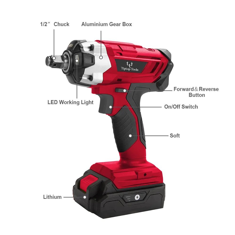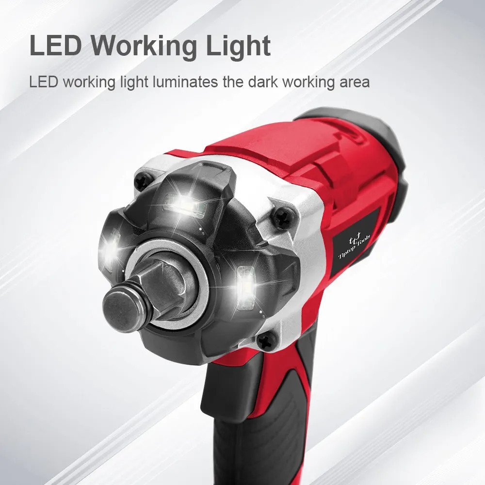 ハイパワー20V充電式インパクトレンチ 木材や金属の穴あけ、ボルトやナット絞めに 無段階速度調整機能付でさまざまな分野で活躍します。 3つのLEDライト搭載で暗い場所での作業もお任せ下さい