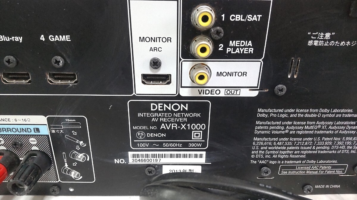 S4029 DENON AVサラウンドレシーバー /AVR-X1000/AVアンプ/5.1ch AirPlay/ネットワーク対応/デノン 通電○ 動作未確認 現状品 JUNK