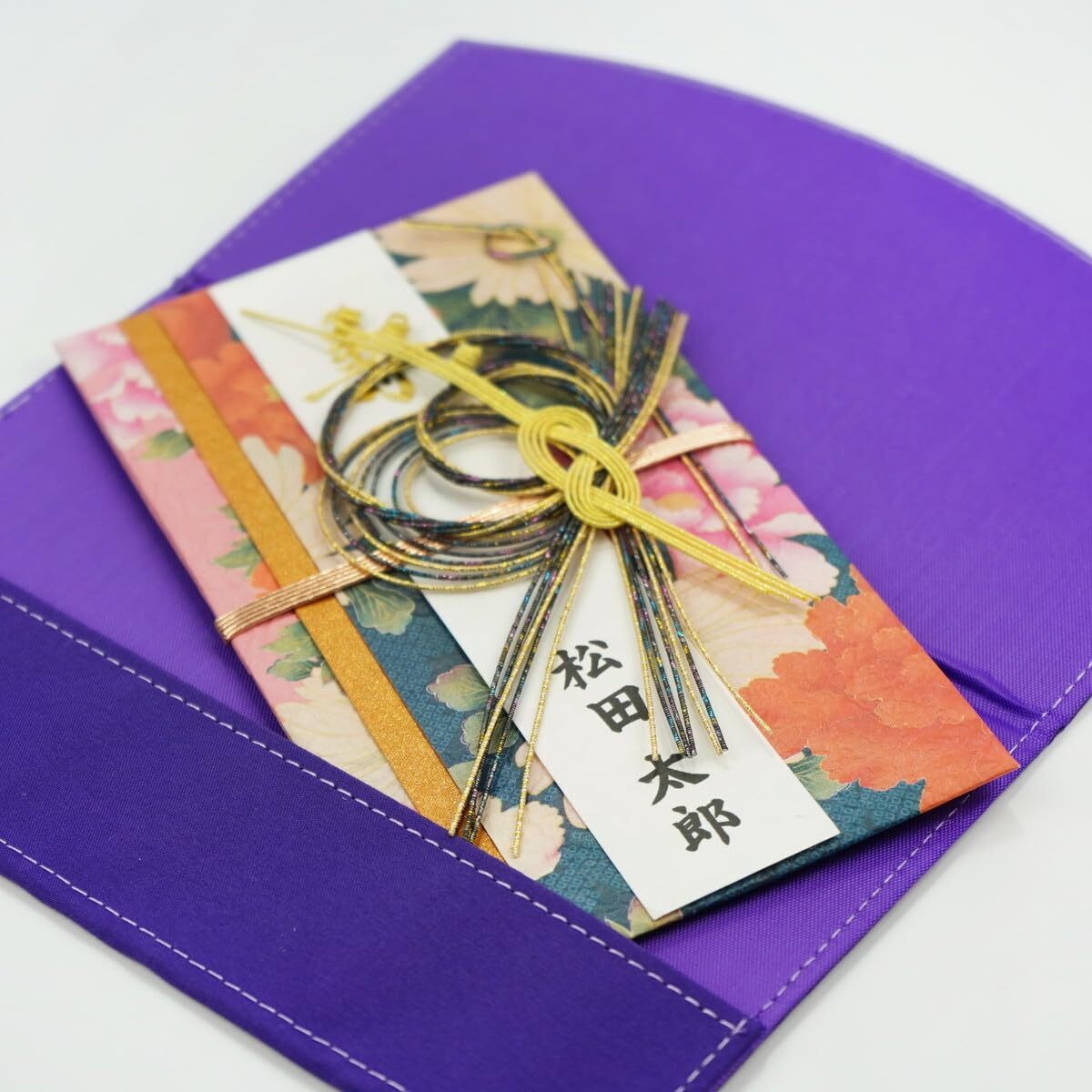 ・【その他】オリジナルデザインの和風もみ紙使用の祝儀袋。着物の古典柄を使用した落ち着いた色合いの祝儀袋。