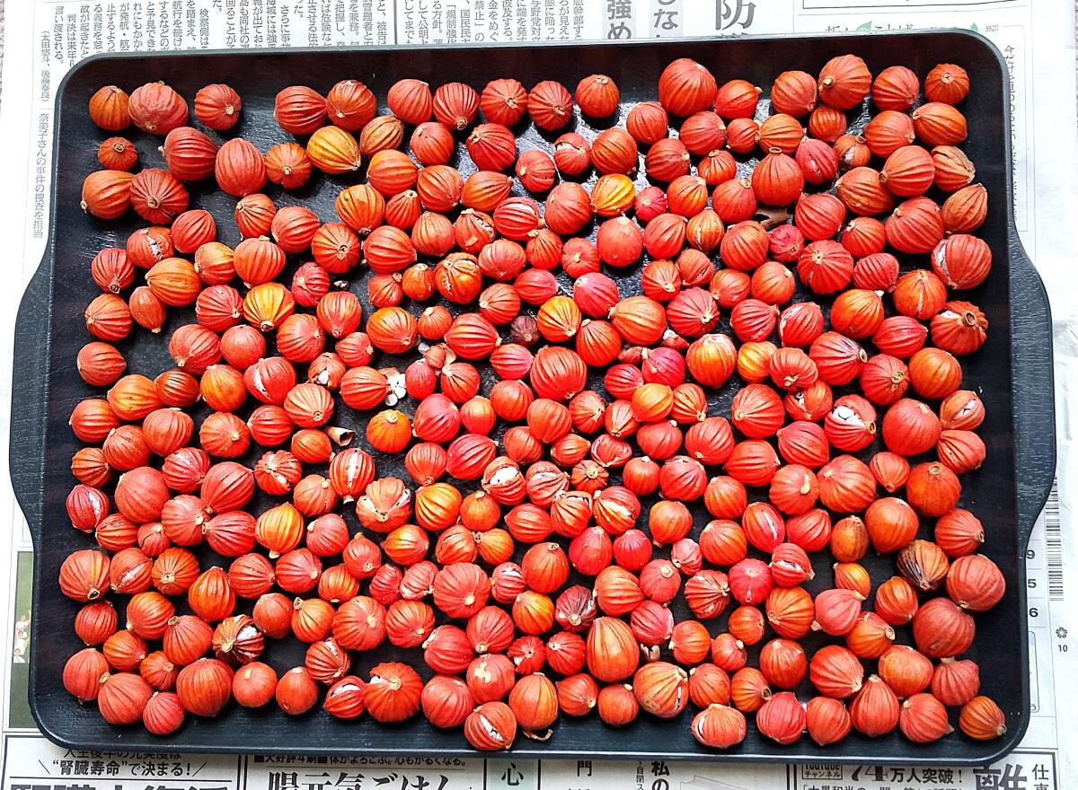 殻付きの実は洗ってから水気を取り、約1リットルの水に20~30個程度入れ、弱火で約10分煮出します。茶の濃さは好みで調整すると良いでしょう。殻取り外しの実を加えても、またその実だけでも作ることが出来ます。量は好みに応じて加減して下さい。