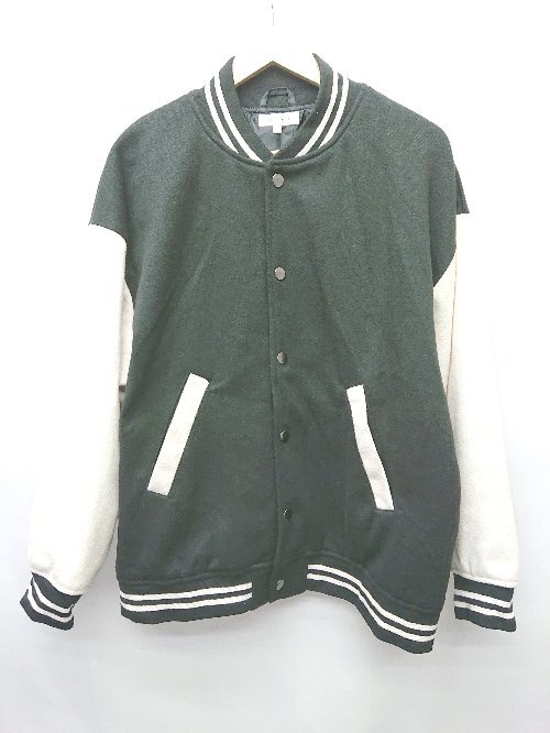 ◇ ⊇ Rocky Monroe ロッキーモンロー 長袖 スタジャン ブルゾン ジャケット サイズL ブラック アイボリー メンズ P