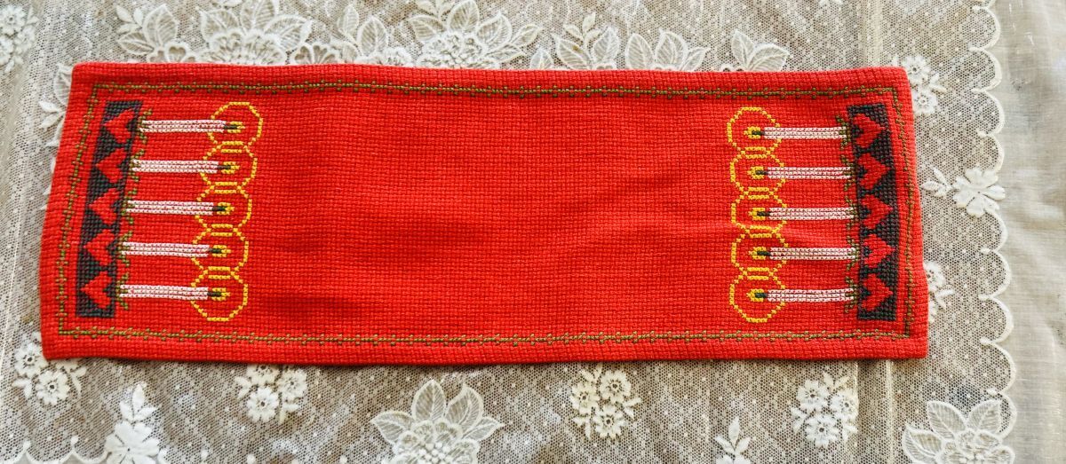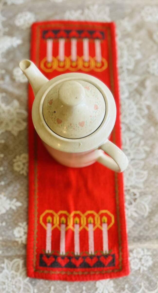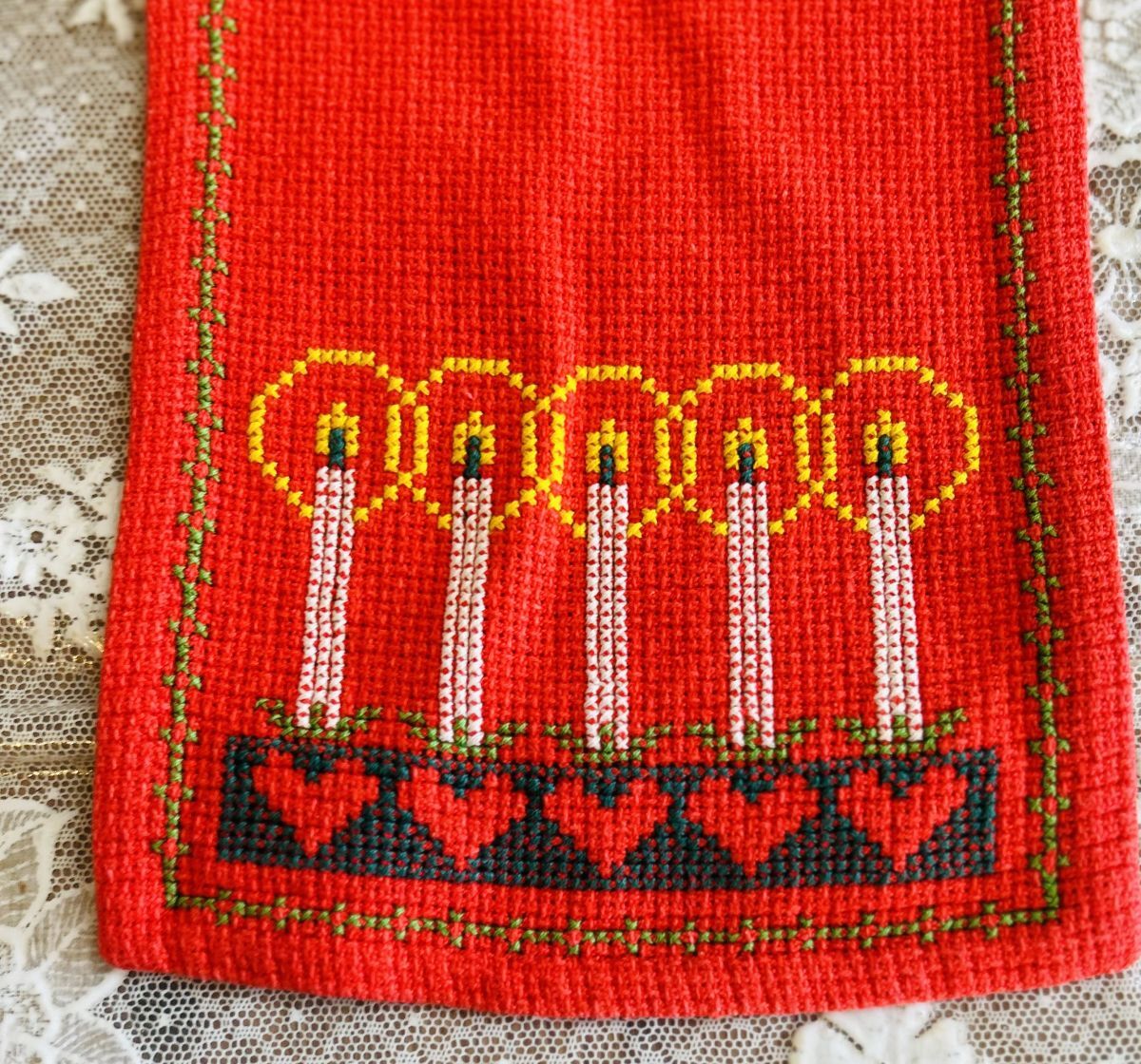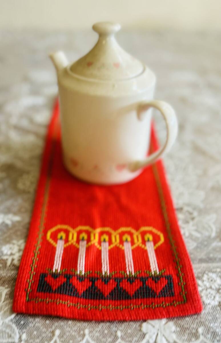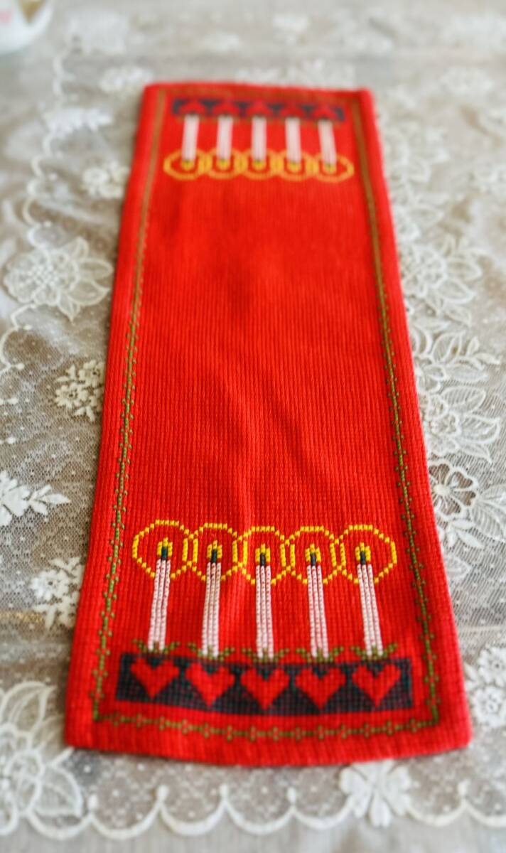 北欧クリスマス☆コットン 赤地 5本のキャンドル ランナー |