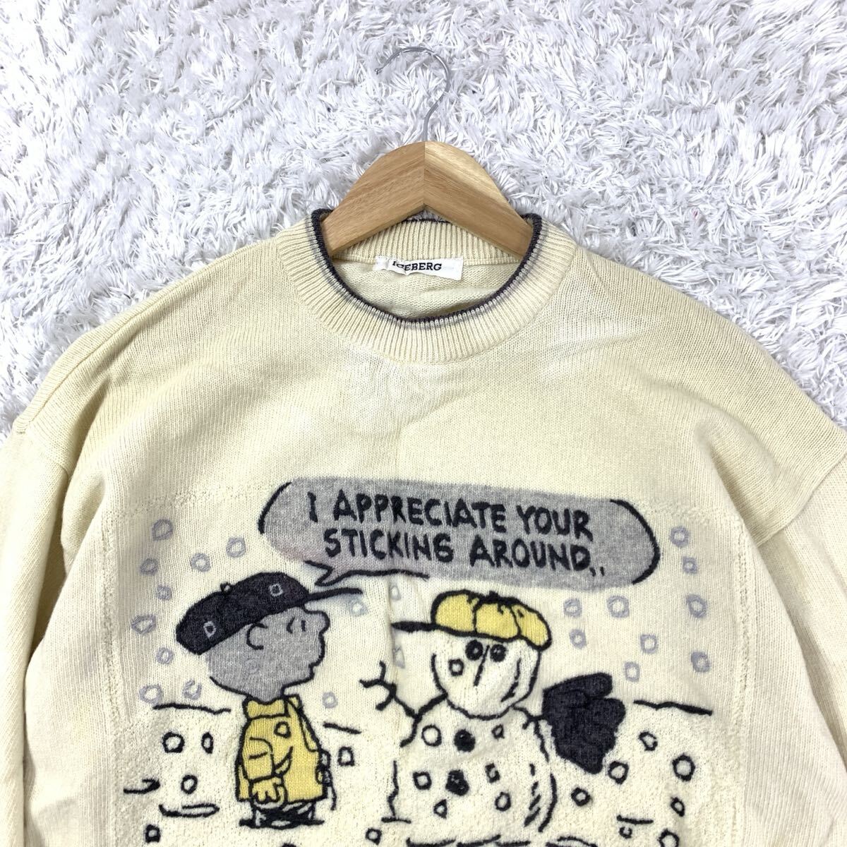 ICEBERG アイスバーグ 長袖ニットトップス 長袖セーター キャラクター ピーナッツ スヌーピー イタリア製 アイボリー ウール YA318
