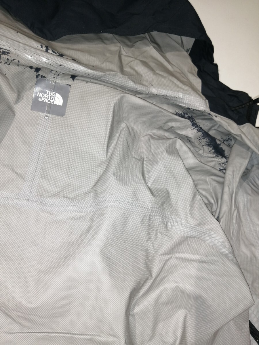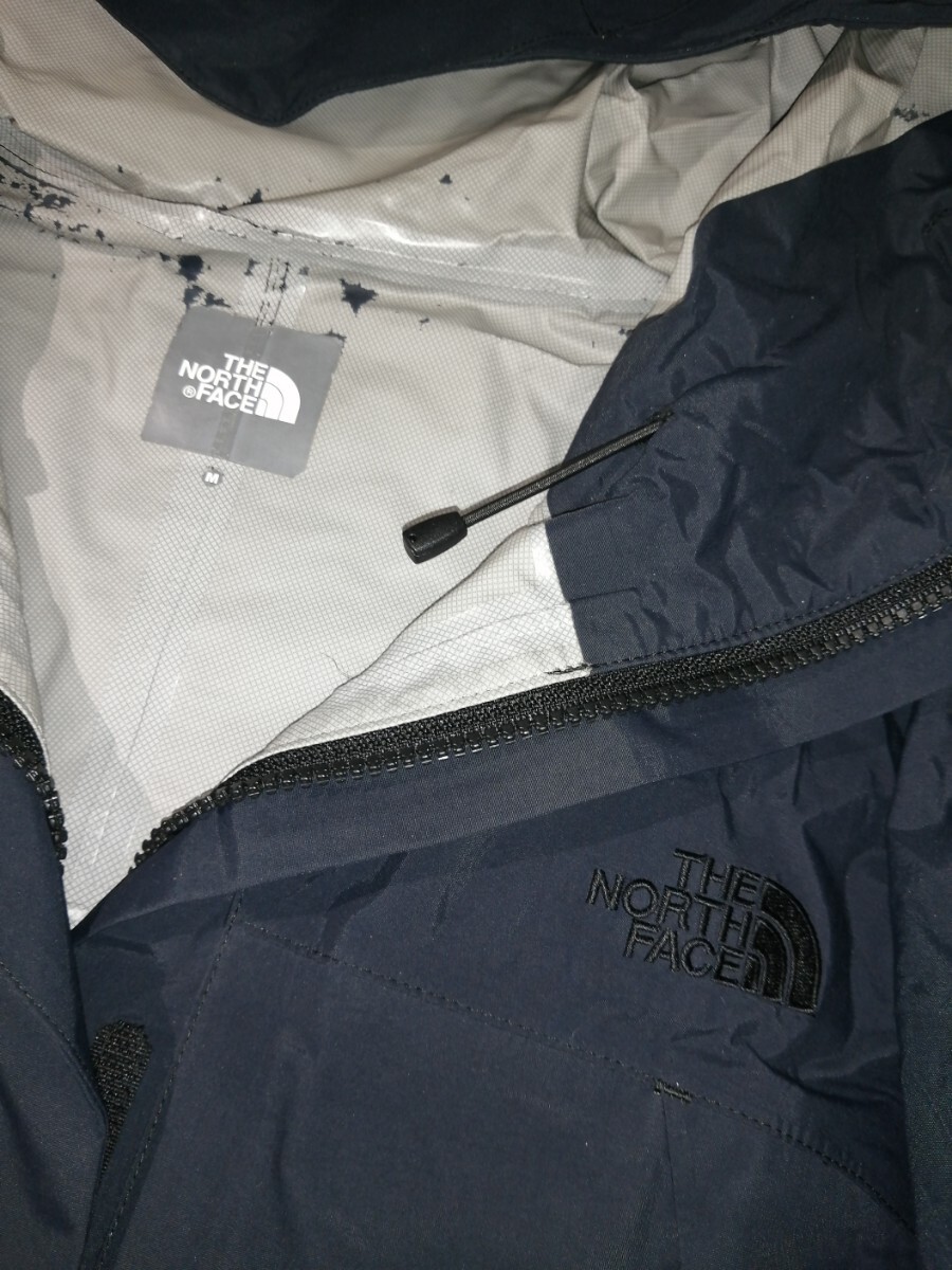 ブランド:THE NORTH FACE 黒系のネイビーメンズM 172 70体型でパーカーの上に着るとタイトな感じです 外面は綺麗だと思います中はお決まりのコーティング剥がれはあるものの見えるところは剥がれていません 着払い予定です