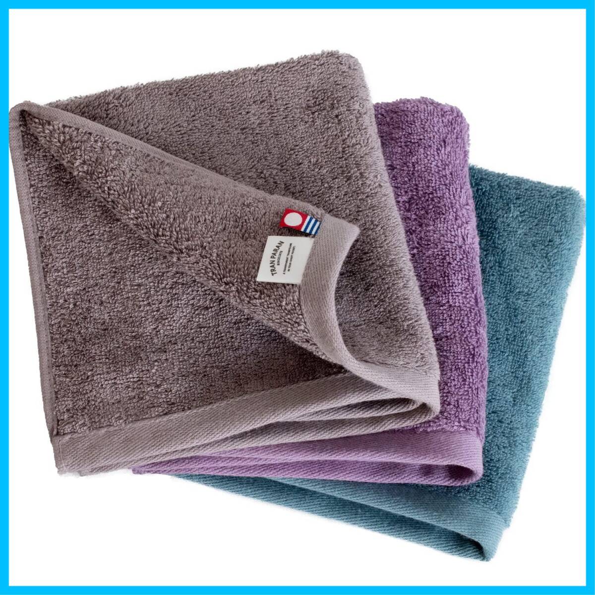 トランパラン 今治タオル ハンドタオル 3枚セット リュクス 日本製 厚手 ホテル仕様 吸水 綿100% 大きめ 約31×35cm (グリーン・ココアブラウン・パープル)