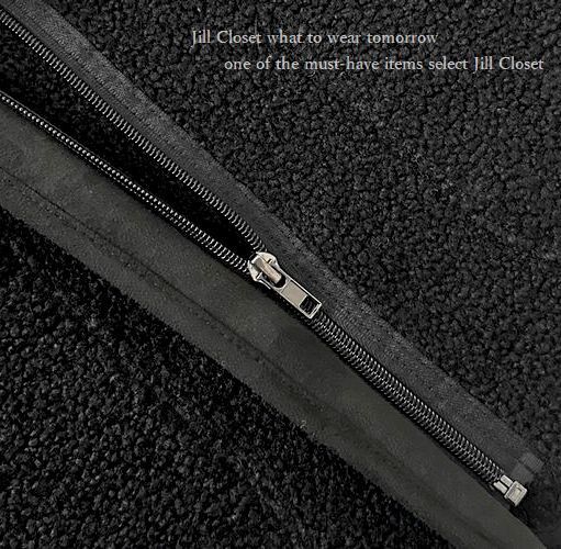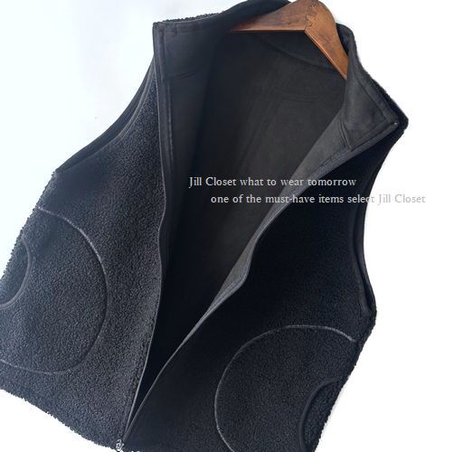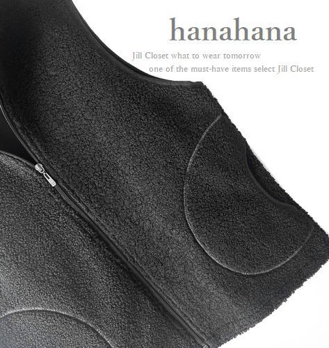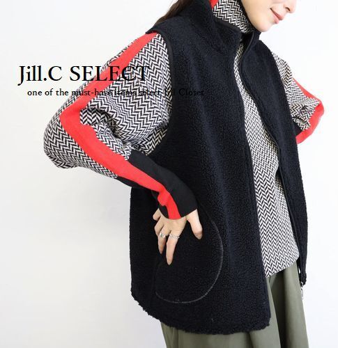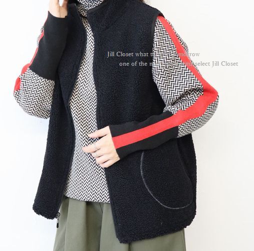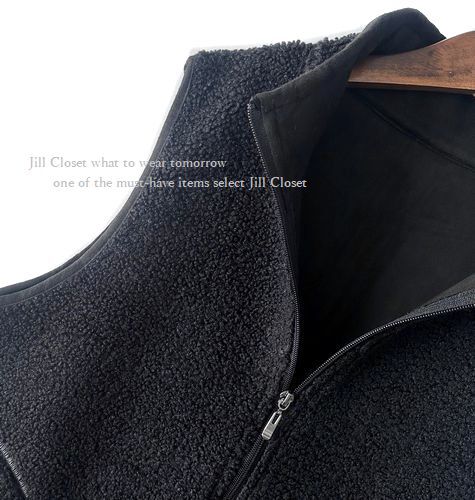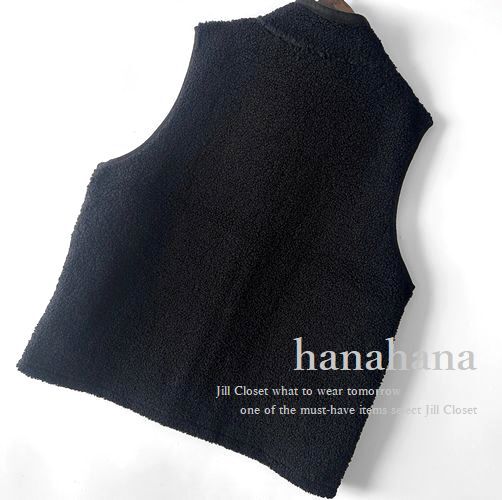 新品【送料185円】 ジップアップ*ハイネックdesign*ボアベスト*ポケット付き♪7763.BLACK