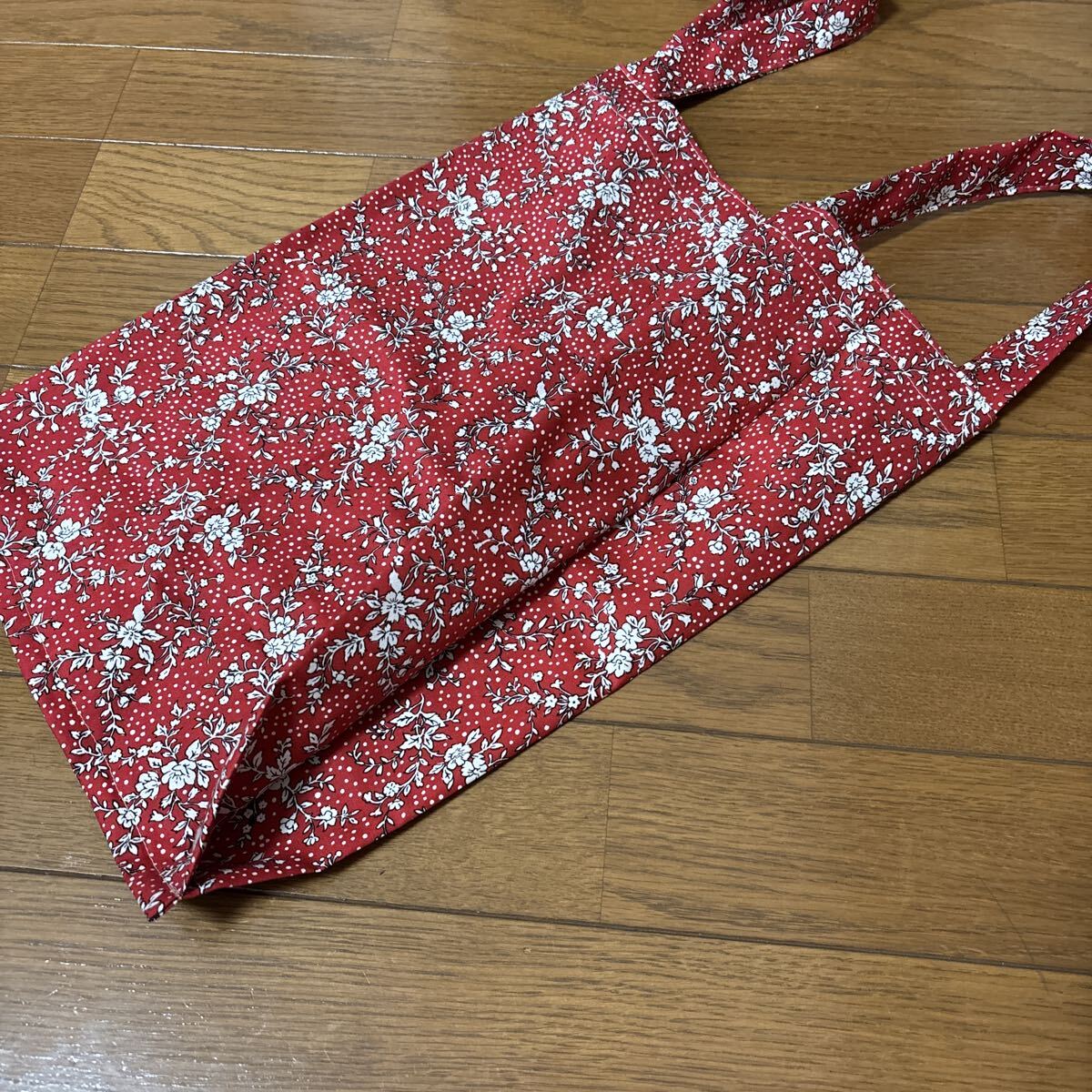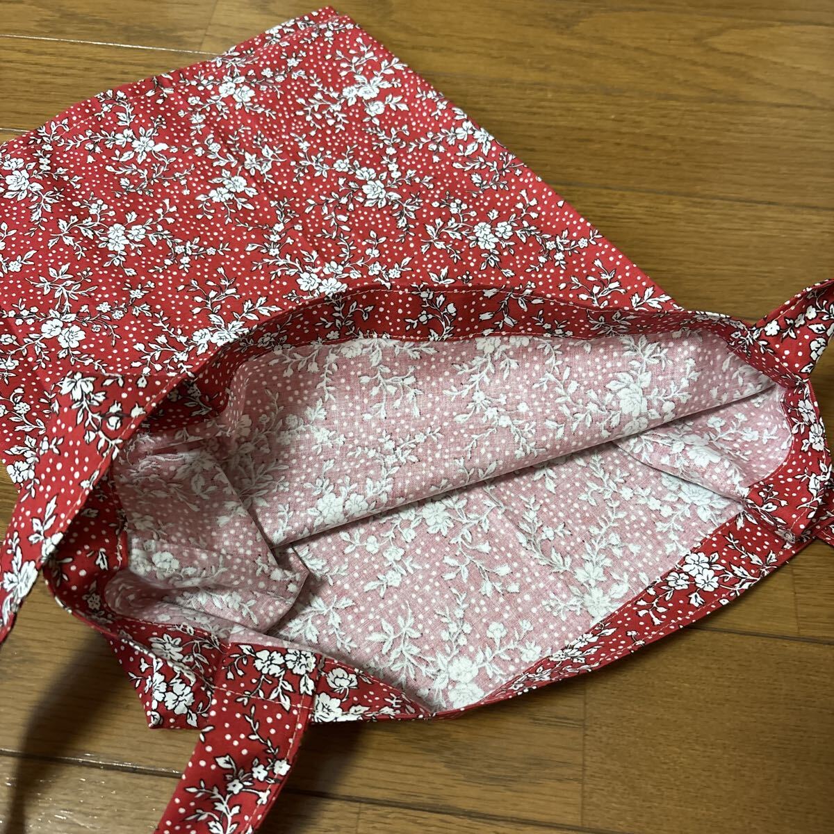 *ハンドメイド*ナチュラル♪クリスマスっぽい柄がかわいいエコバッグ 赤 お花