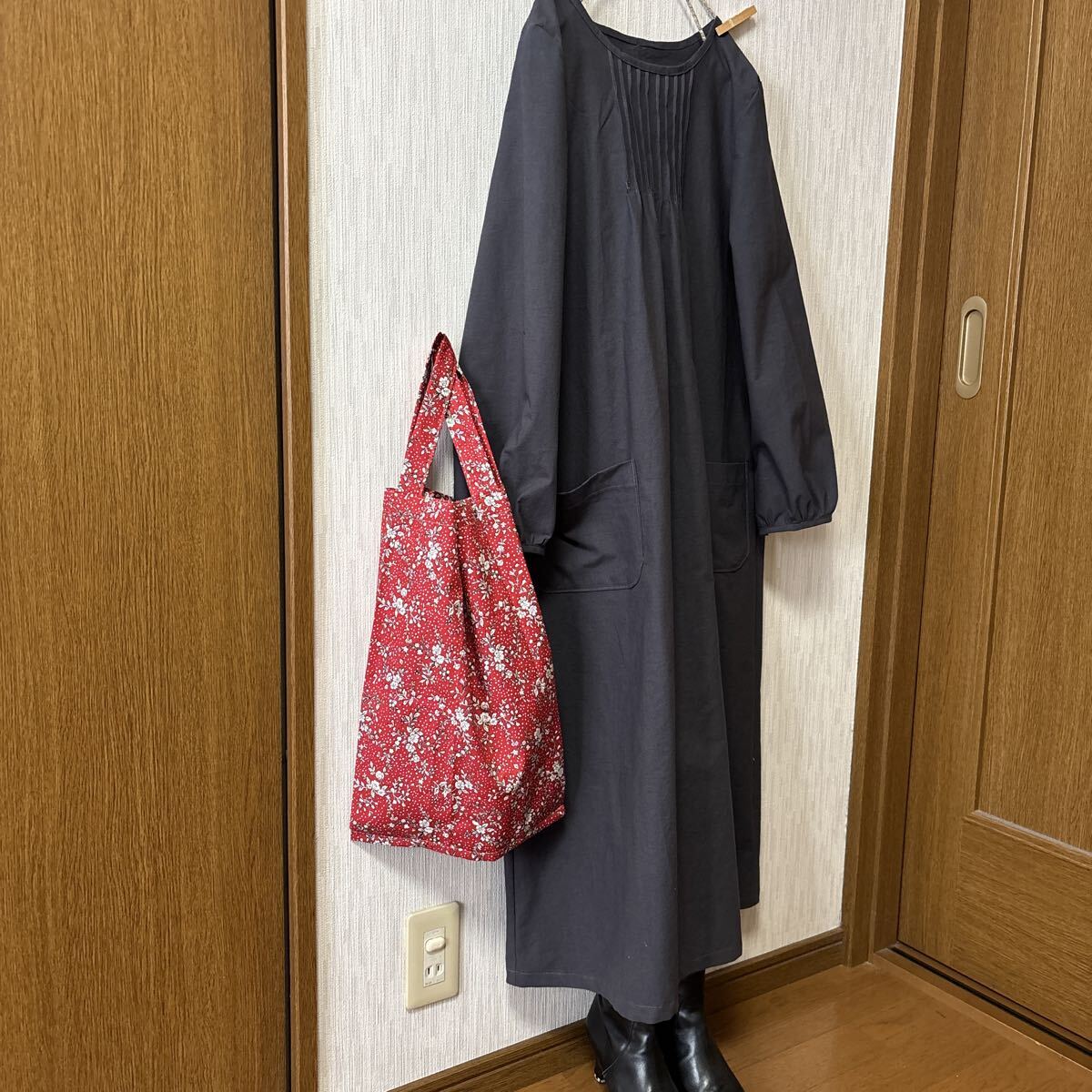 クリスマスっぽい柄のプリントがかわいいコットン生地で、エコバッグをつくりました。