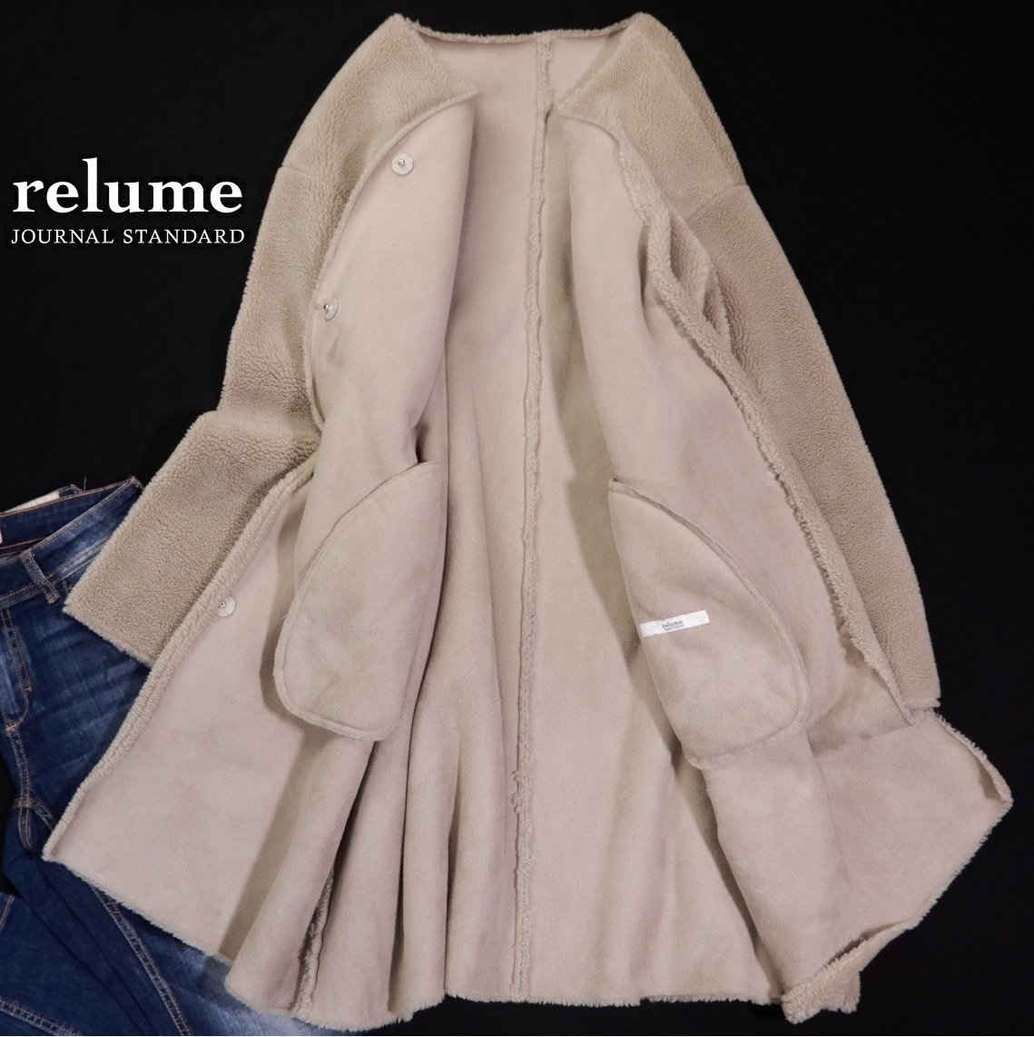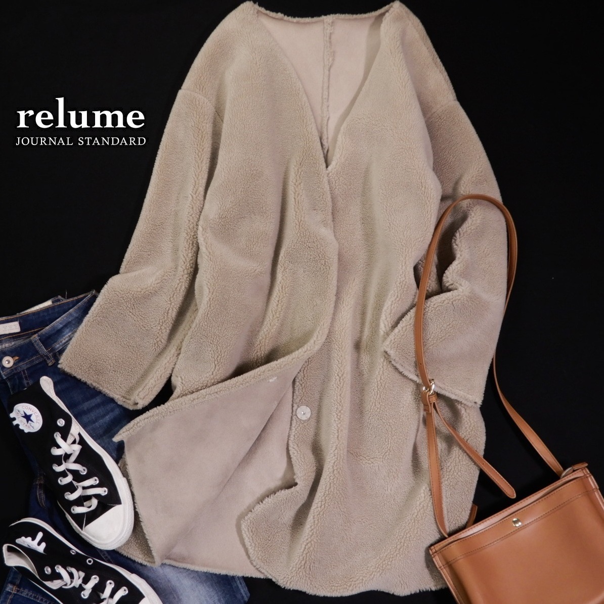 ジャーナルスタンダード relume JOURNAL STNADARD 大人可愛い☆Vネック ノーカラー ボア ムートン風 コート