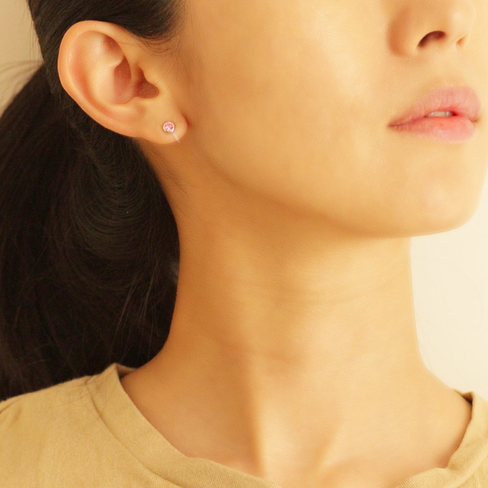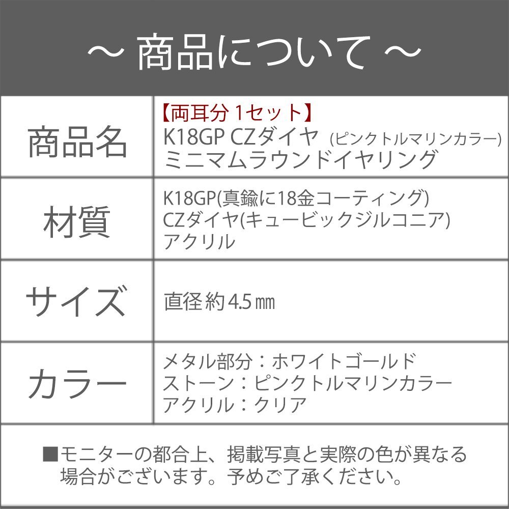 新品/イヤリング/K18GP/レディース/ピンクトルマリン/カラー/小さい/一粒/ダイヤ/CZ/シルバー/18金/18kコーティング/ホワイトゴールド