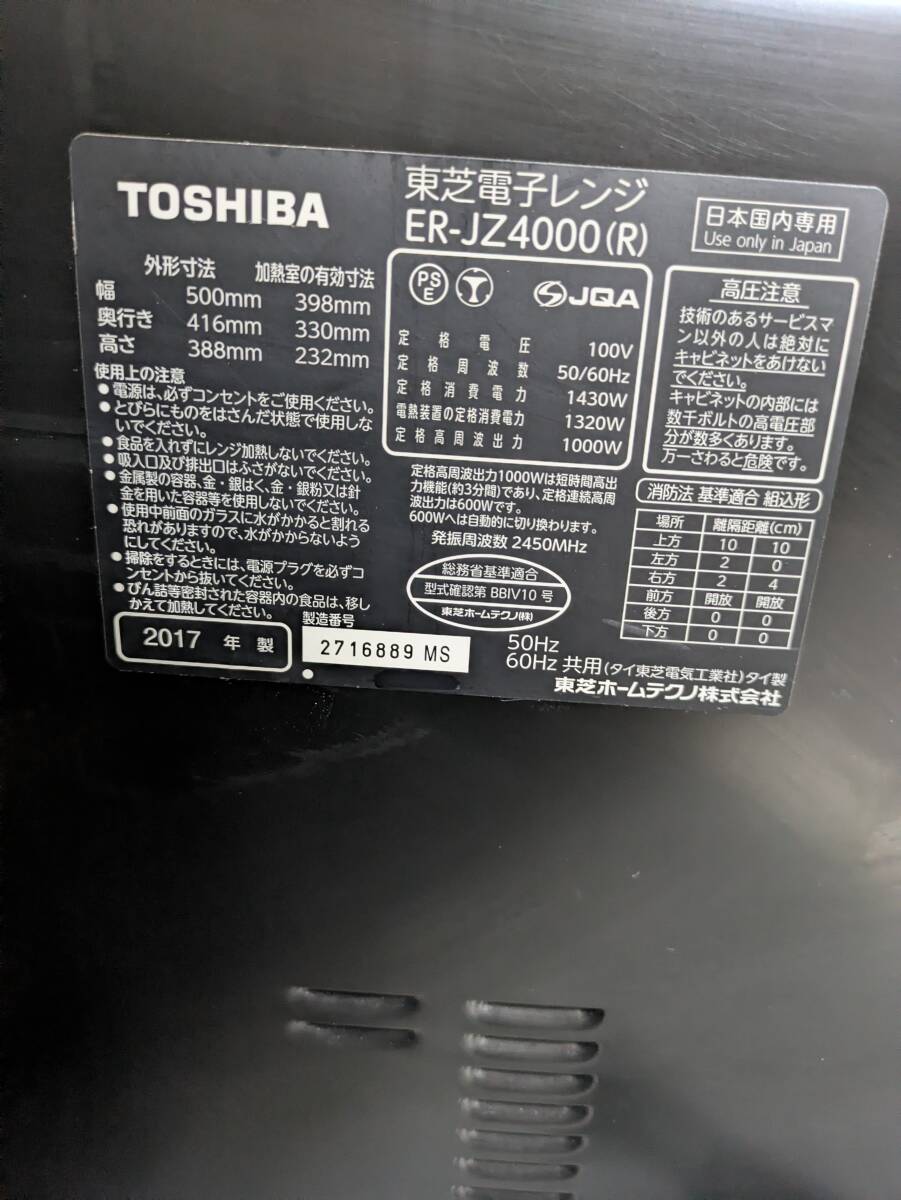 | TOSHIBA 過熱水蒸気オーブンレンジ ER-JZ4000 Rになります 動作品です 本体のみになります ※状態は画像で確認ください ※中古品になりますので写真に無い気づかないキズ・汚れがある場合があります よろしくお願いします | ||