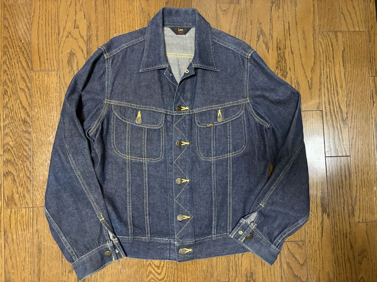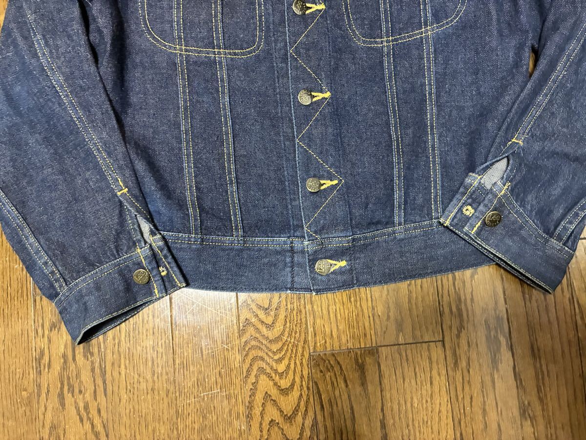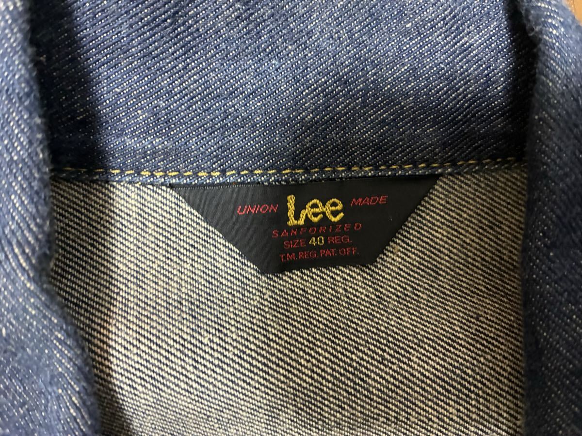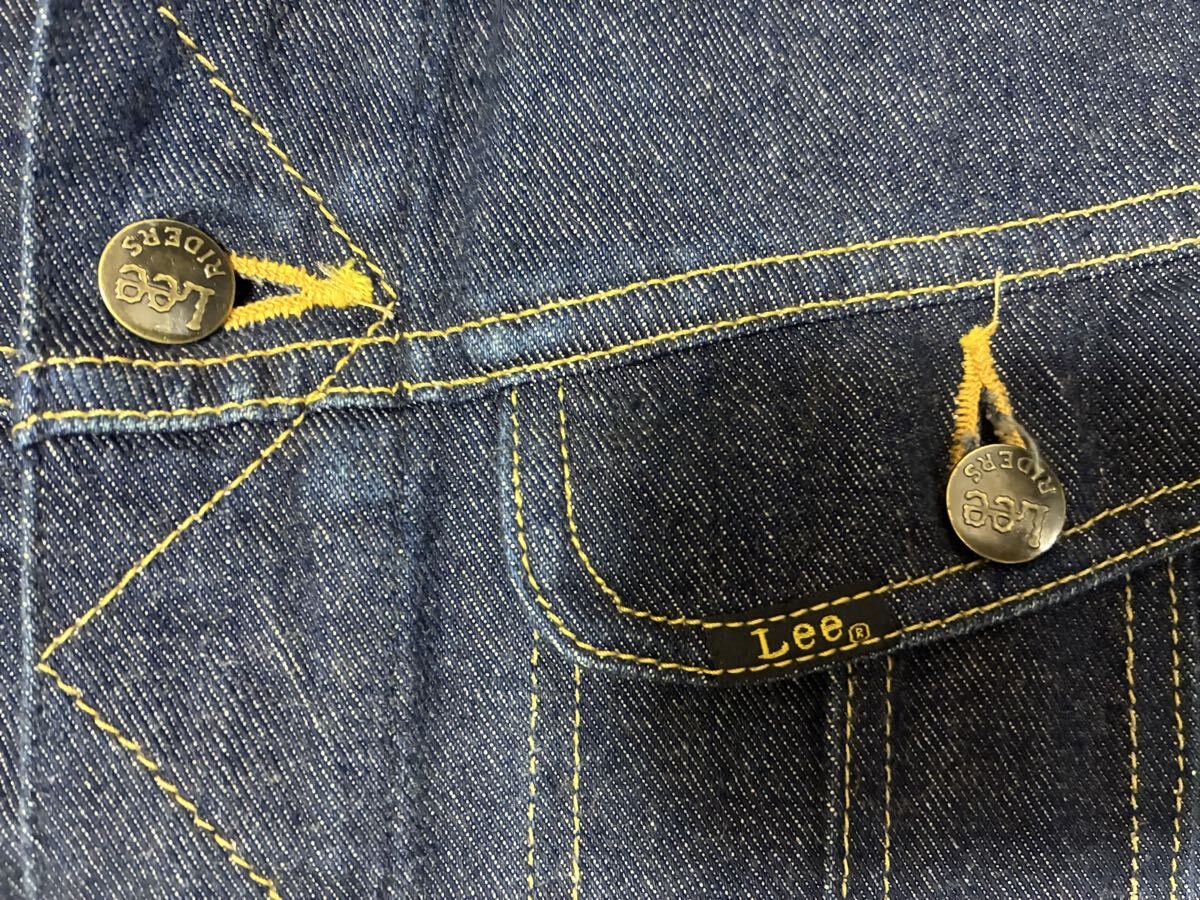 刺繍三角タグの50年代の復刻モデル。短めの着丈、ボタンは "Lee RIDERS" の刻印の入るものが使われ、裾後ろのアジャスターには黒の猫目ボタンが使われています。