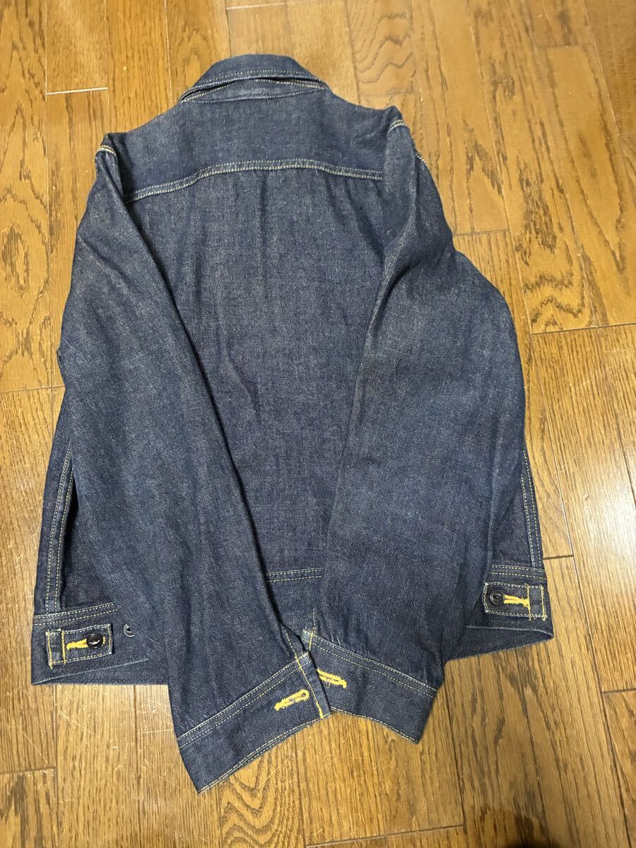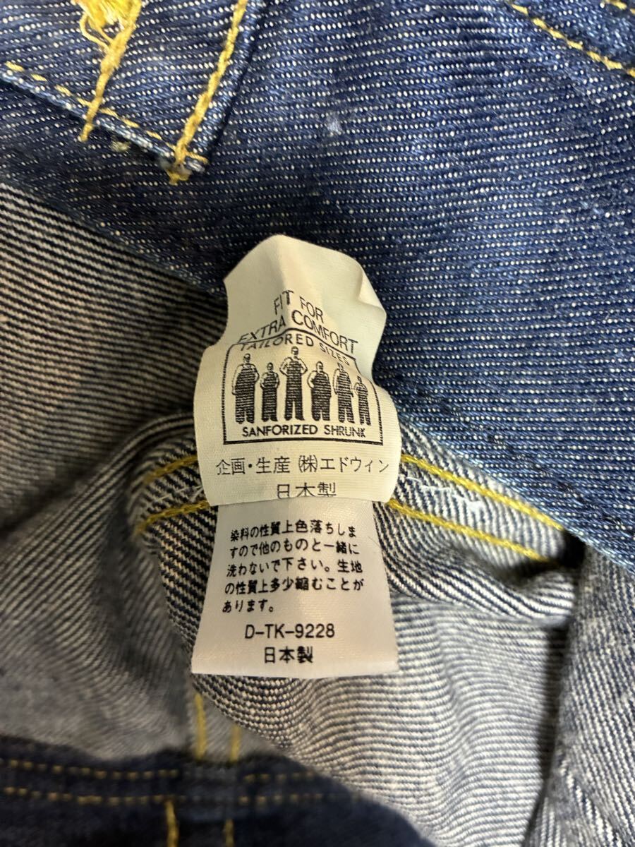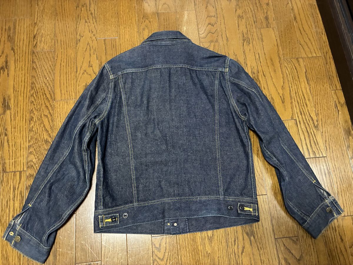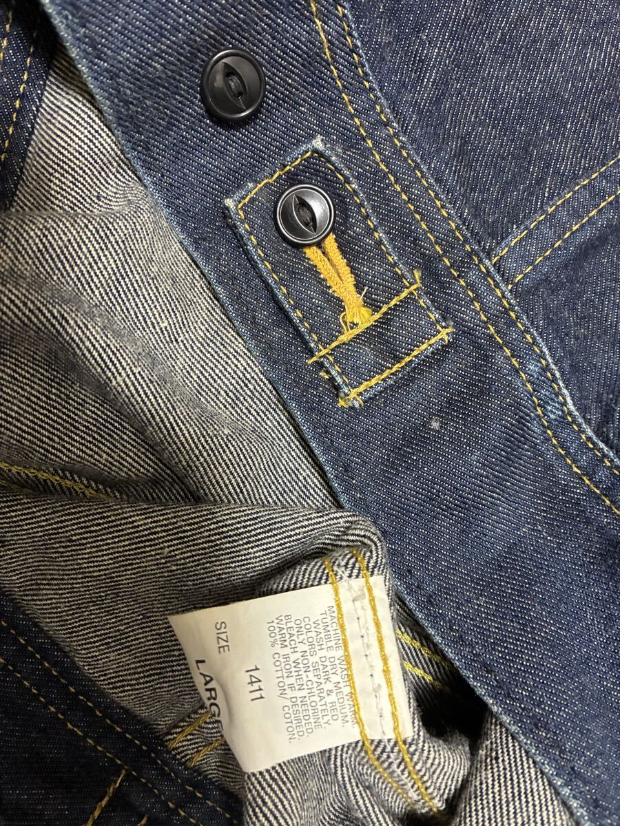 刺繍三角タグの50年代の復刻モデル。短めの着丈、ボタンは "Lee RIDERS" の刻印の入るものが使われ、裾後ろのアジャスターには黒の猫目ボタンが使われています。