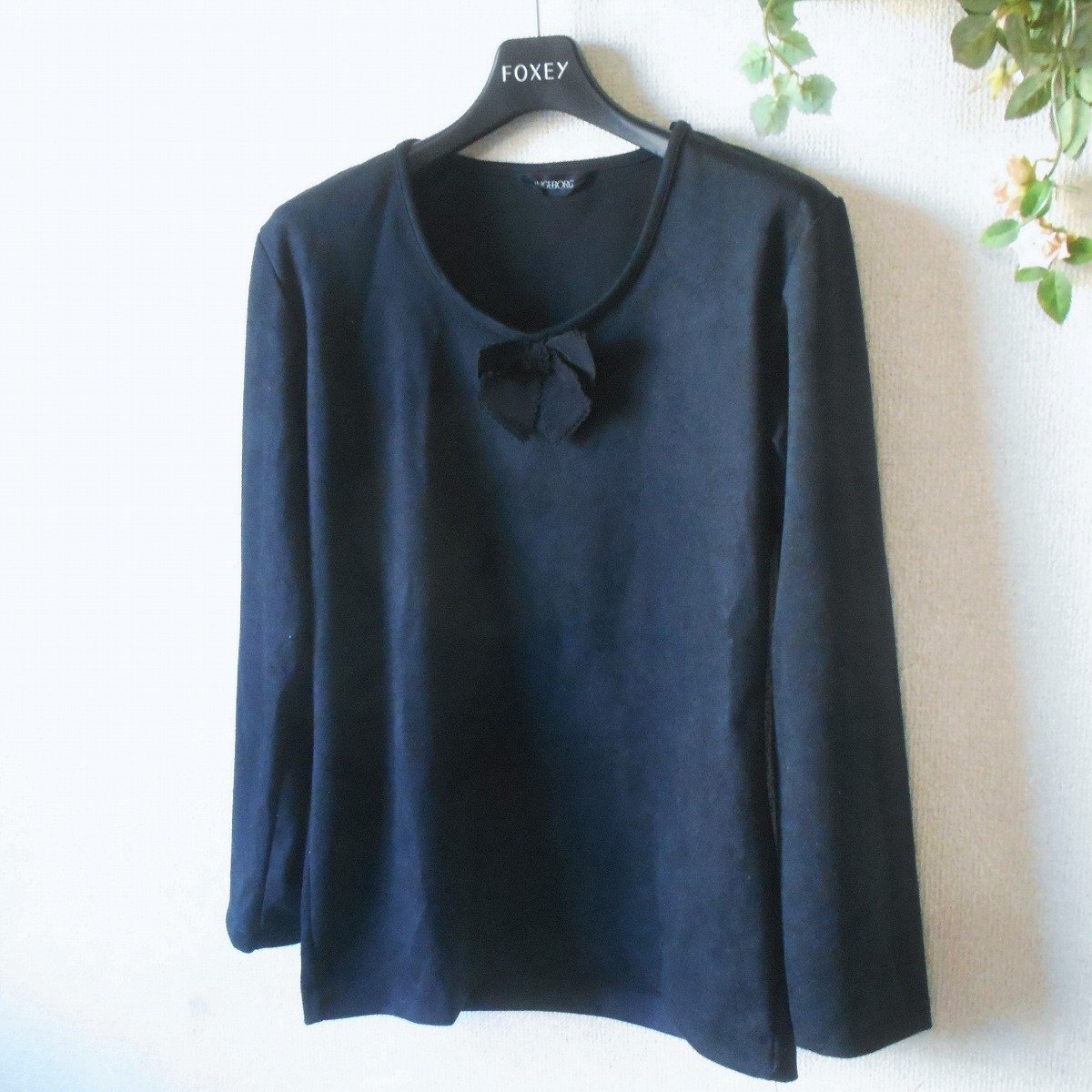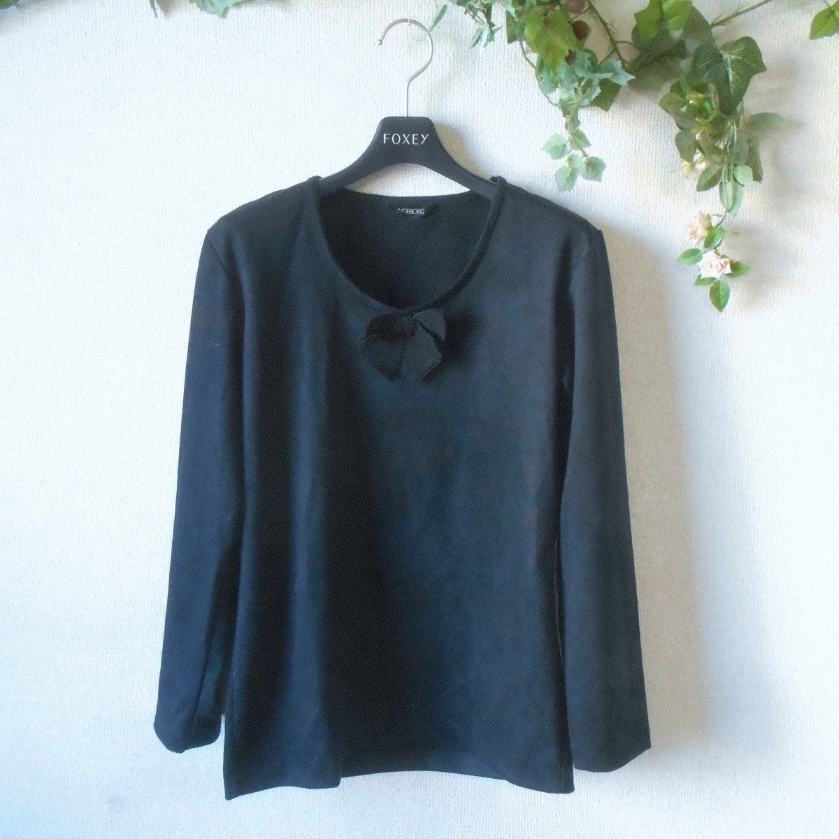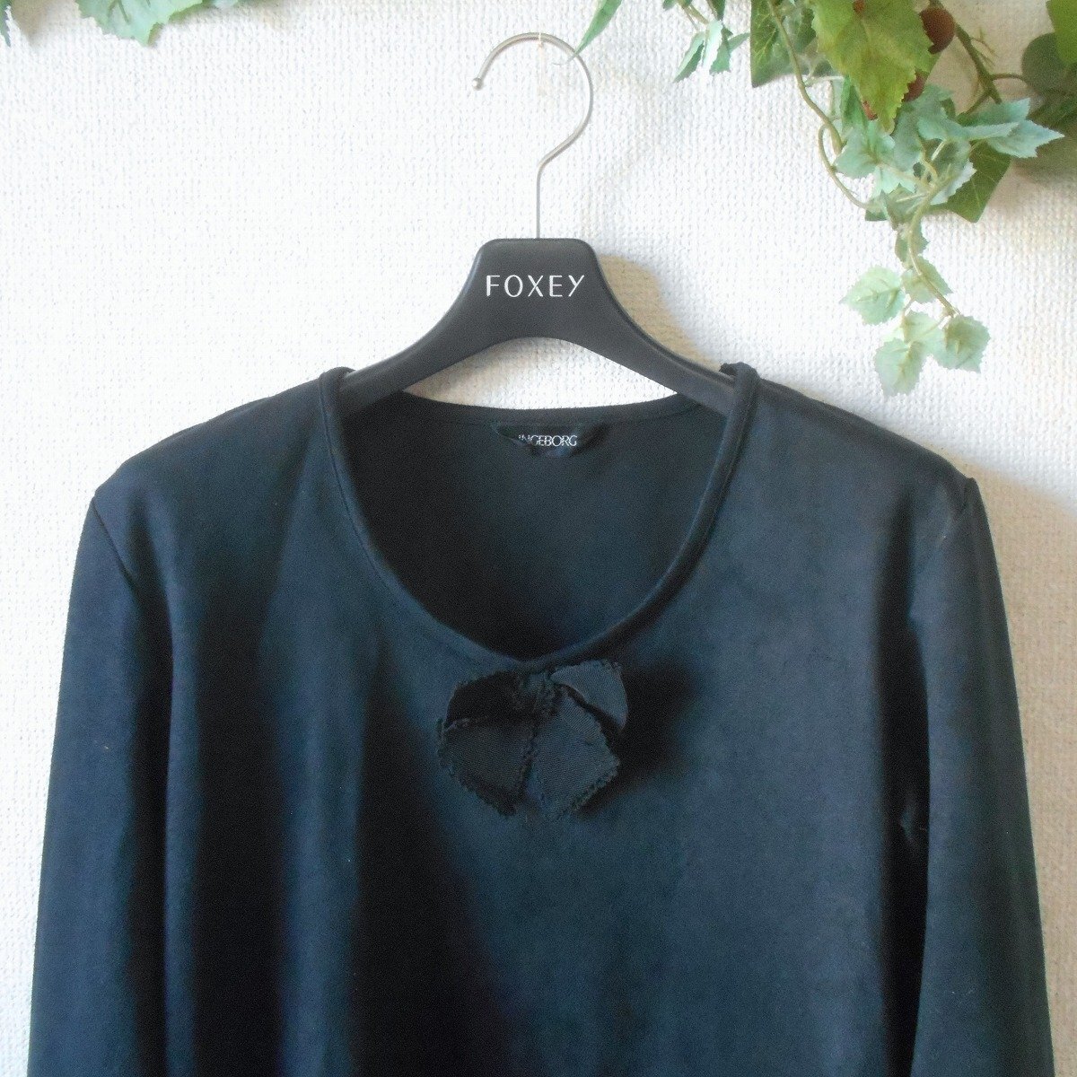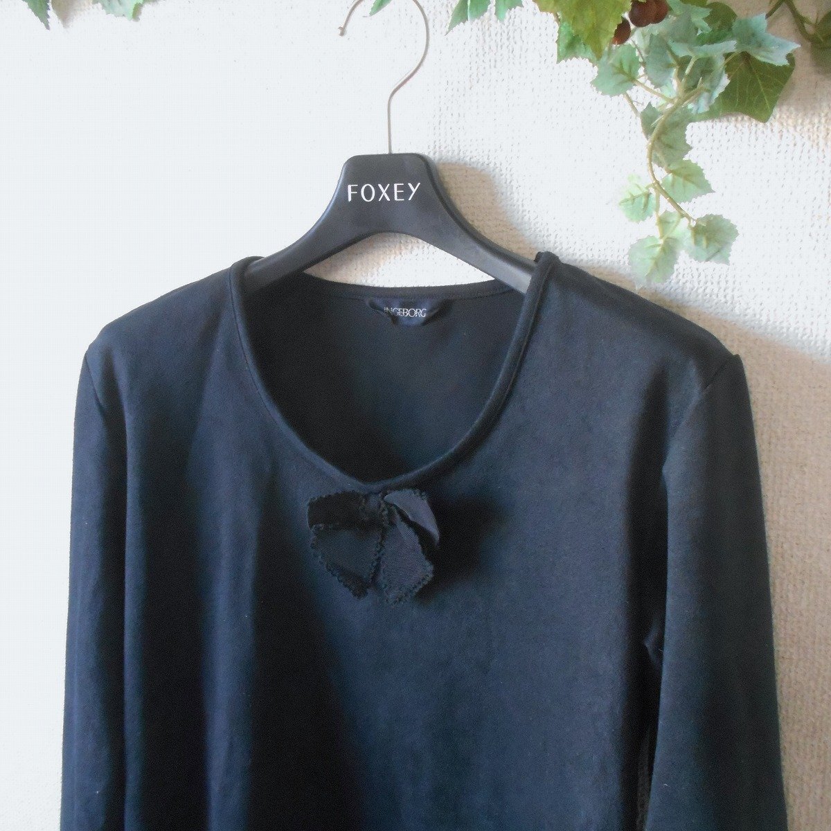 インゲボルグ INGEBORG 長袖 カットソー 秋 冬 レディース フェイク スエード リボン 付き 黒 日本製