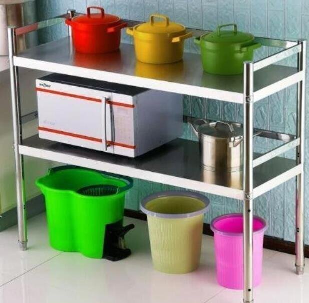 新品★ガード付きステンレス棚着地多層台所用品小百貨店電子レンジ収納棚