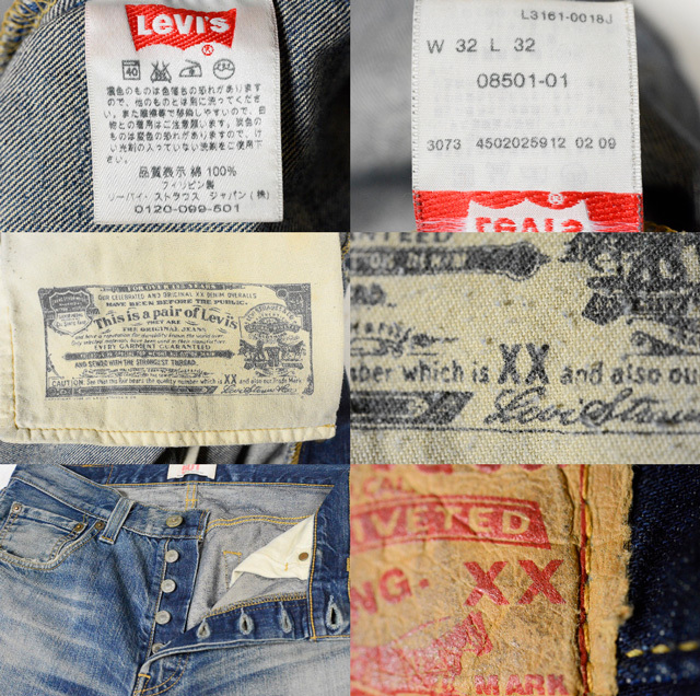 "08501"は、2008年に発売されたリーバイスの日本企画の製品。"00501-01"で使用されたXX17デニムや"501-0101"で使用されたXXX7デニムを進化させたXXX9デニムが使用されております。縫製はフィリピン製。製品添付の小冊子では、XXX9デニムについて以下のとおり説明されています。