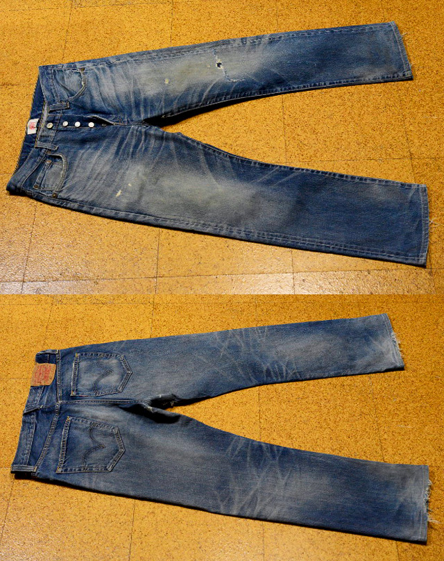 生産された08501は一本一本が違う箇所にダメージ加工や色落ち加工が施されています。