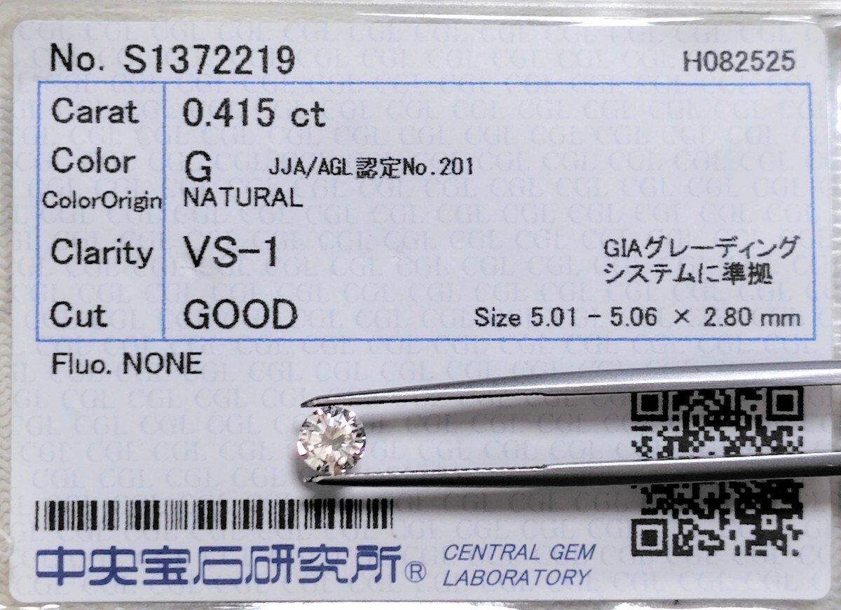 【11/22★安値〜】天然ダイヤモンド ルース 0.415ct G VS1 鑑別 CGL│B2001qw 【0.4ct】 ダイヤ diamond