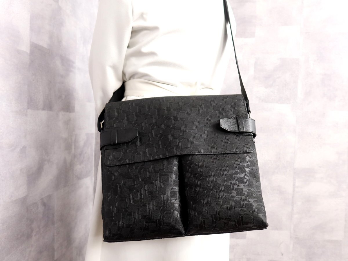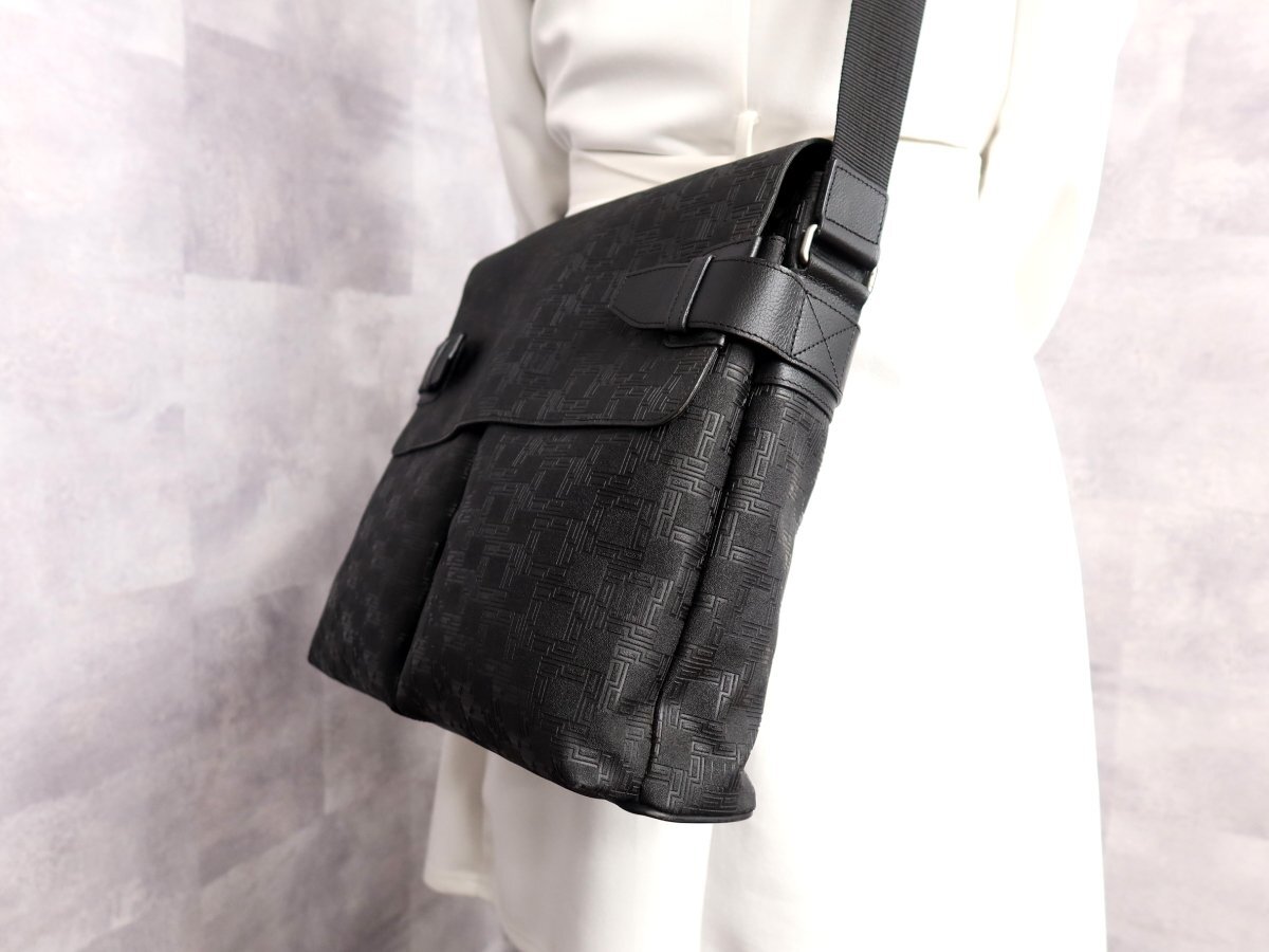 ●超美品●dunhill ダンヒル●メンズ●ディーエイト●PVC カーフ レザー 本革●ショルダー バッグ●黒●シルバー金具●A4 かばん●Js62439