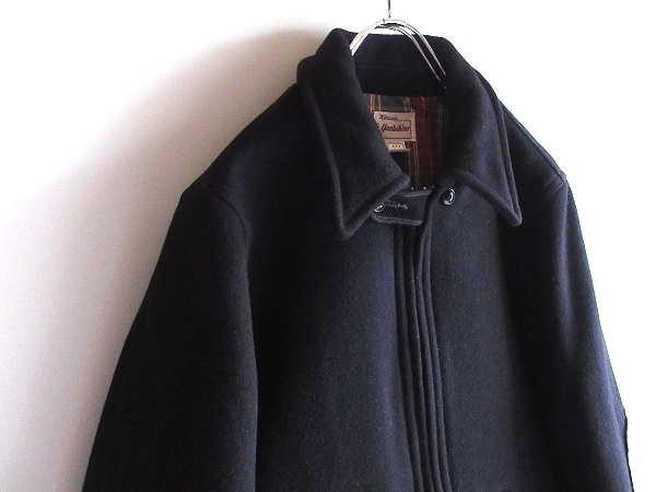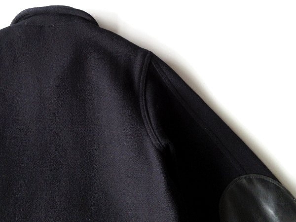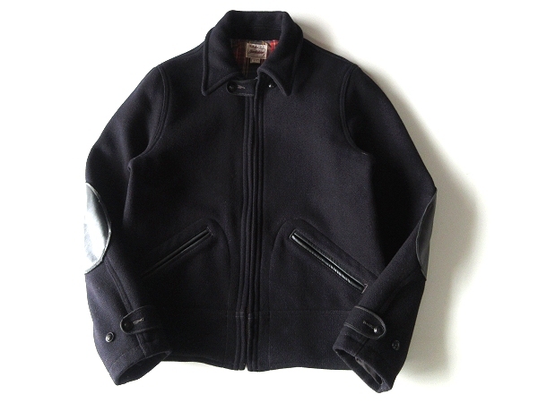 ヤンクシャーのジャケット。目の詰まったウールメルトン生地を使用しております。ビンテージのスポーツジャケットを基にしたデザイン。レザーのエルボーパッチやチンストラップのディテールが魅力です。上質な素材使いと綺麗なシルエットで、様々なコーディネートにお使い頂ける一着です。